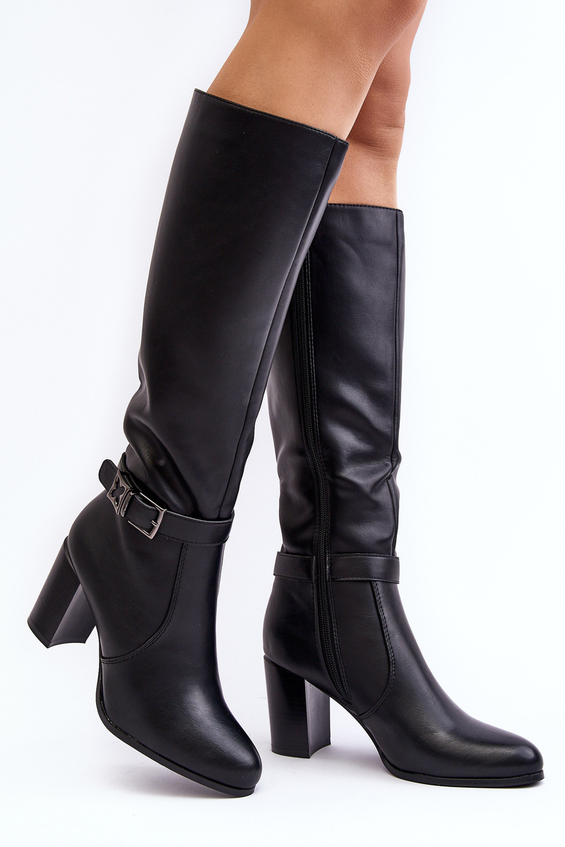 Kozaki Damskie Na Słupku Z Klamrą Ocieplane Czarne Sendilia