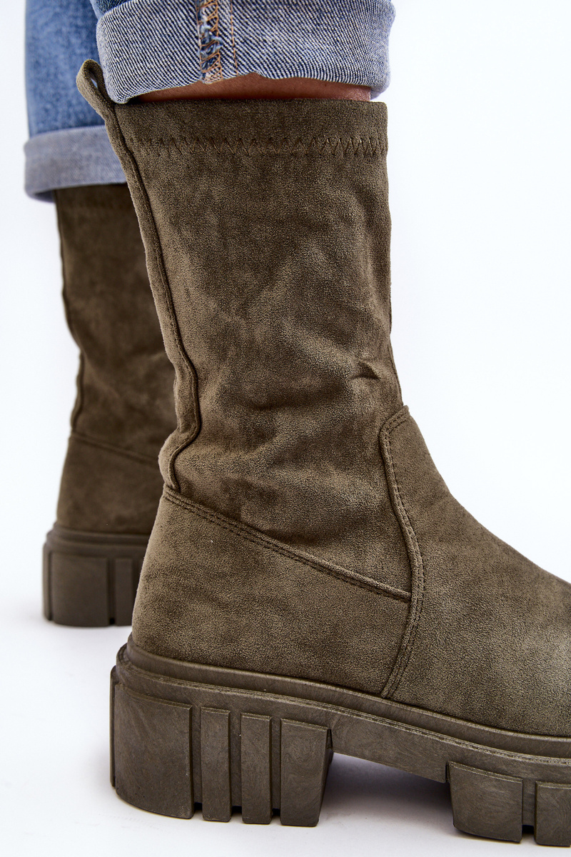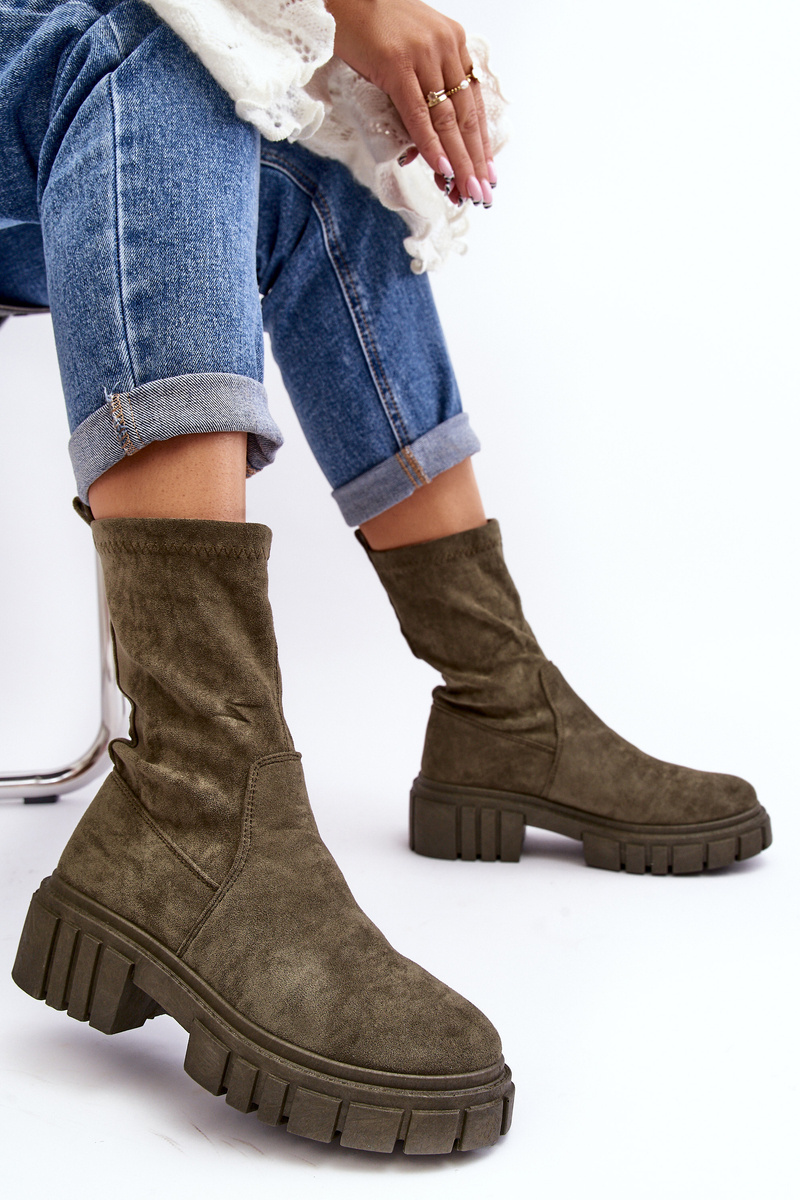 Wsuwane botki damskie wykonane z eko zamszu. Osadzone na masywnym, płaskim obcasie i platformie. Nieocieplone. Miękka wkładka zapewni komfort podczas użytkowania. Zapiętek w tym obuwiu jest usztywniany. Model ten dopasujesz do wielu jesiennych stylizacji! Przy wyborze rozmiaru prosimy sugerować się tabelą rozmiarów.