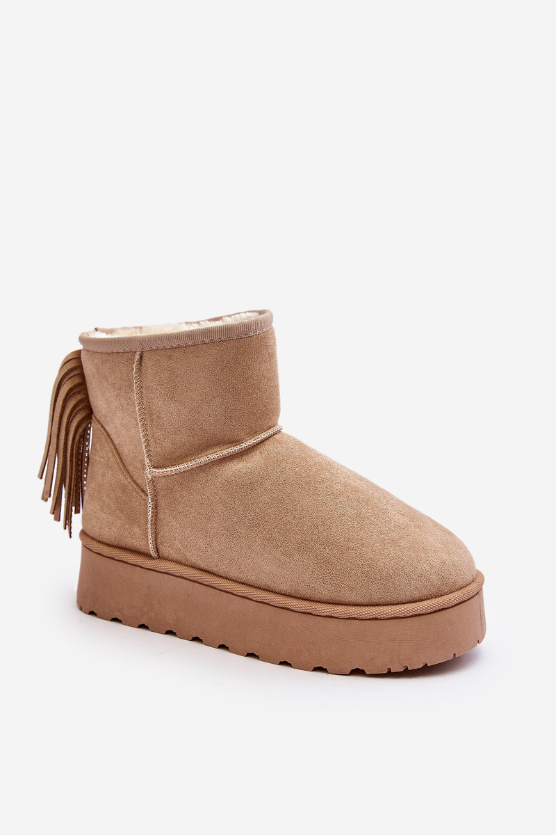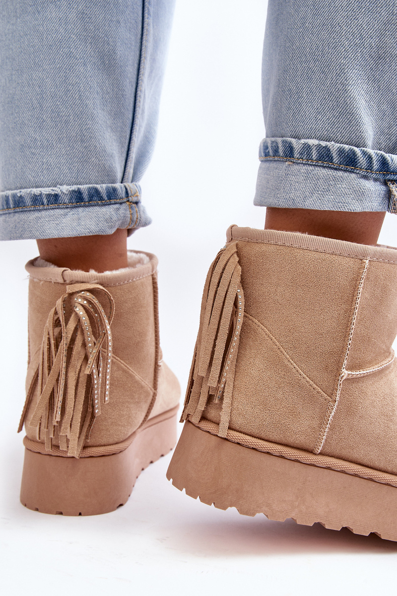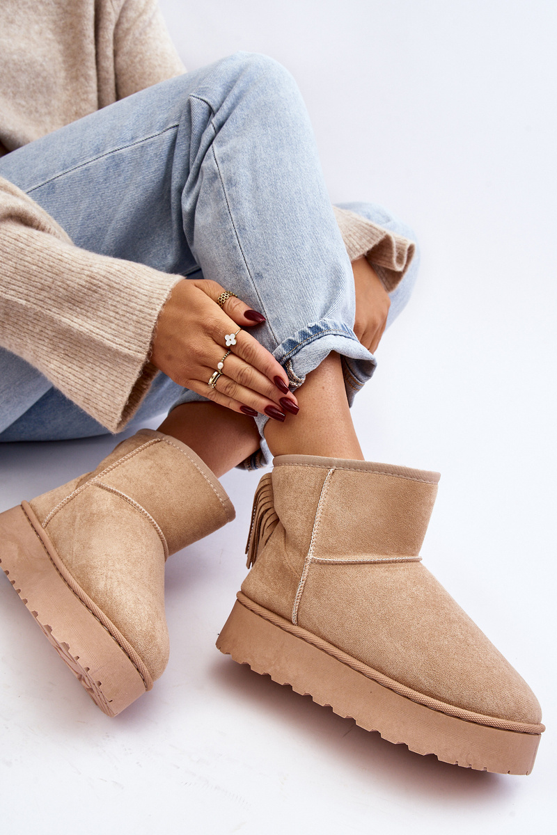 Damskie Śniegowce Na Masywnej Platformie Z Frędzlami Beżowe Lirico