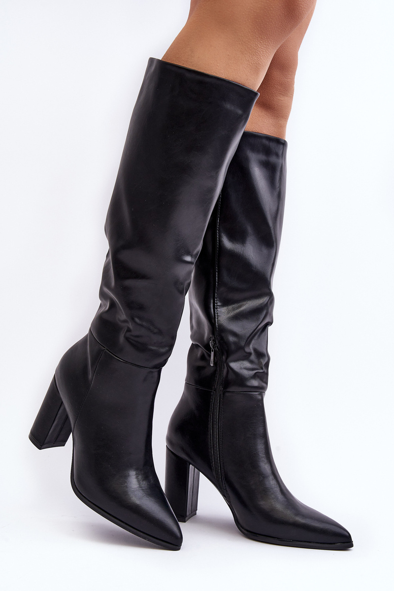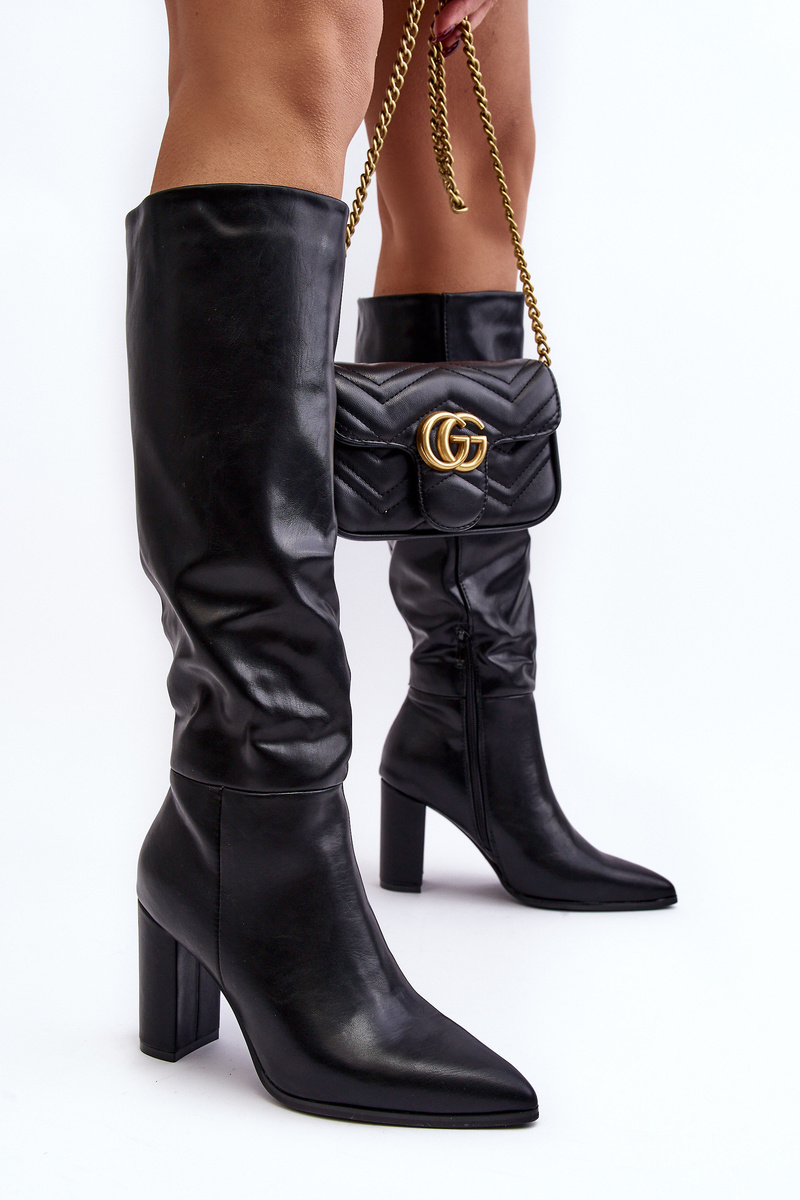 Kozaki Damskie Do Kolana Na Słupku Czarne Fiminna