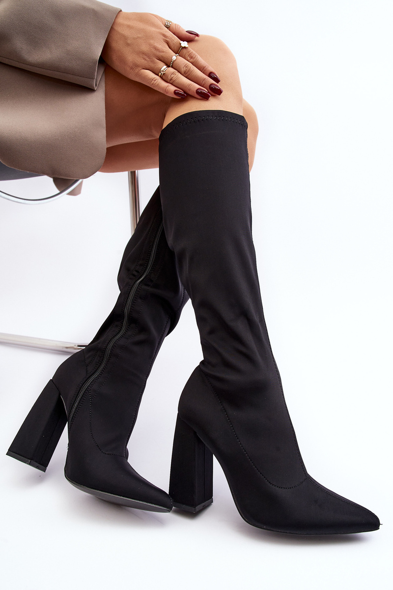 Damskie Kozaki Przed Kolano Na Słupku Czarne Fatuma