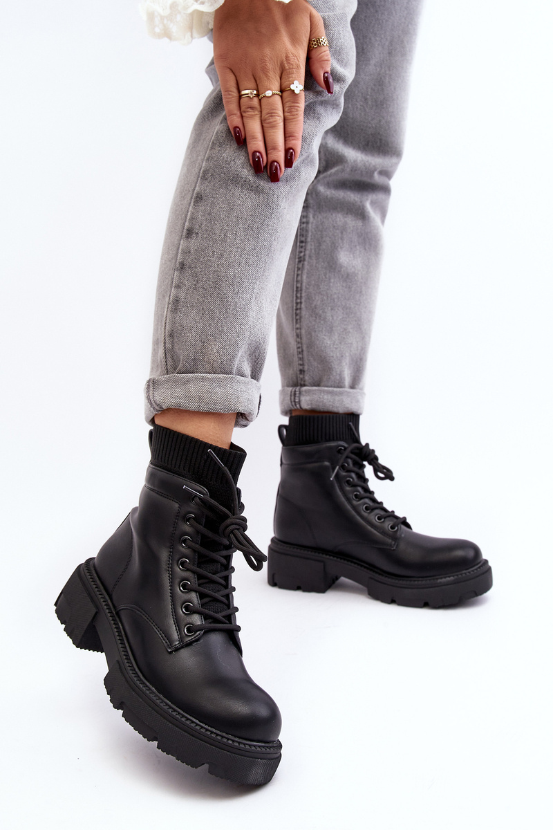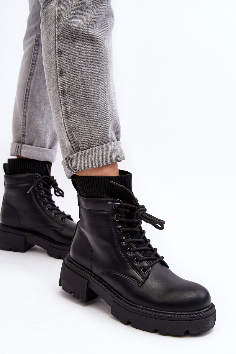 Trapery Botki Damskie Ze Skarpetą Czarne Rivella