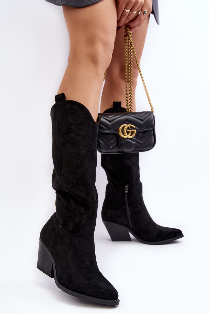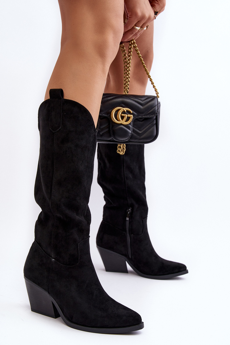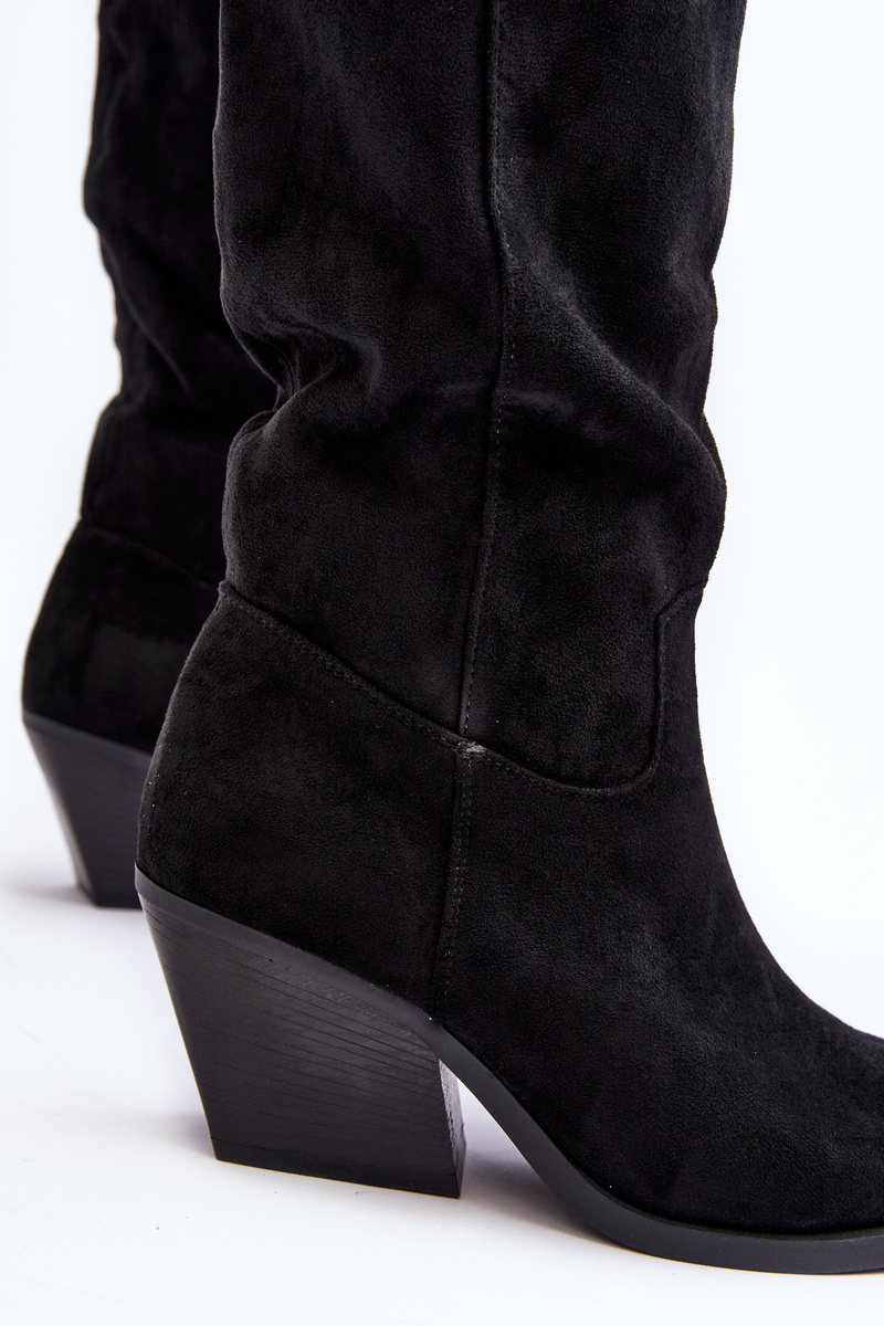Damskie Kozaki Kowbojki Na Obcasie Przed Kolano Czarne Oppore