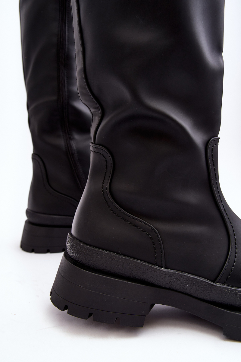 Kozaki Damskie Ocieplane Na Płaskim Obcasie Czarne Desiren