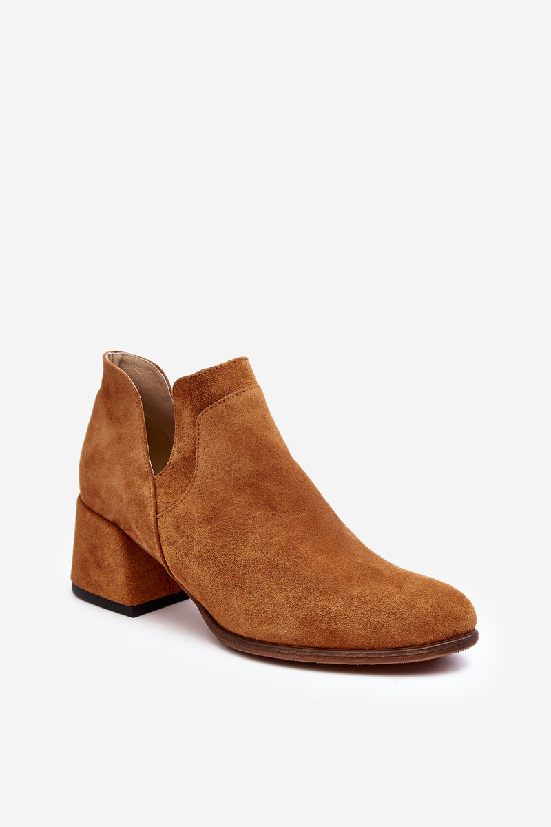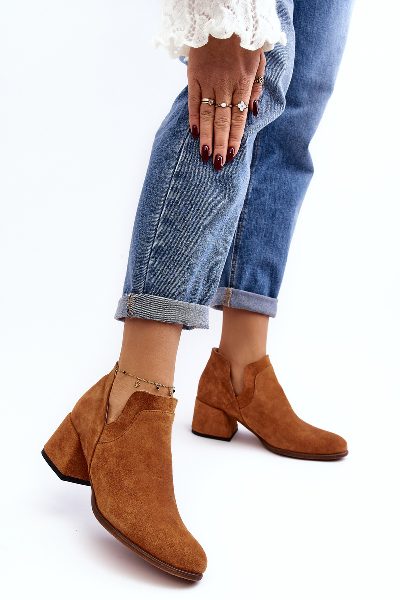 Zamszowe Botki Z Wycięciami Na Obcasie Camel Dalros
