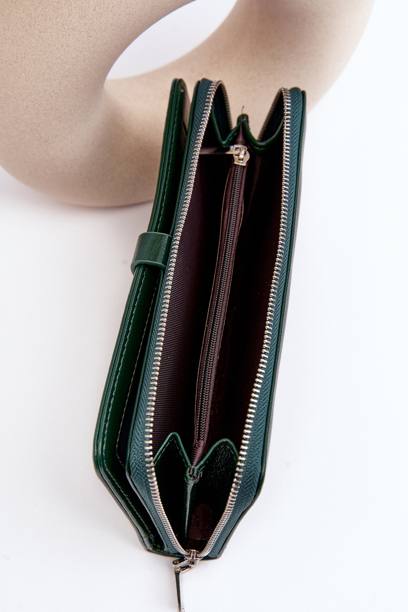 Damski Lakierowany Portfel Na Magnes Ciemnozielony Bielia