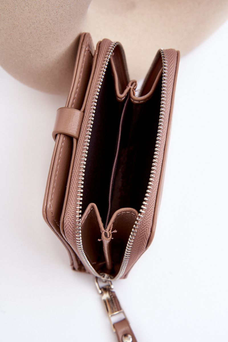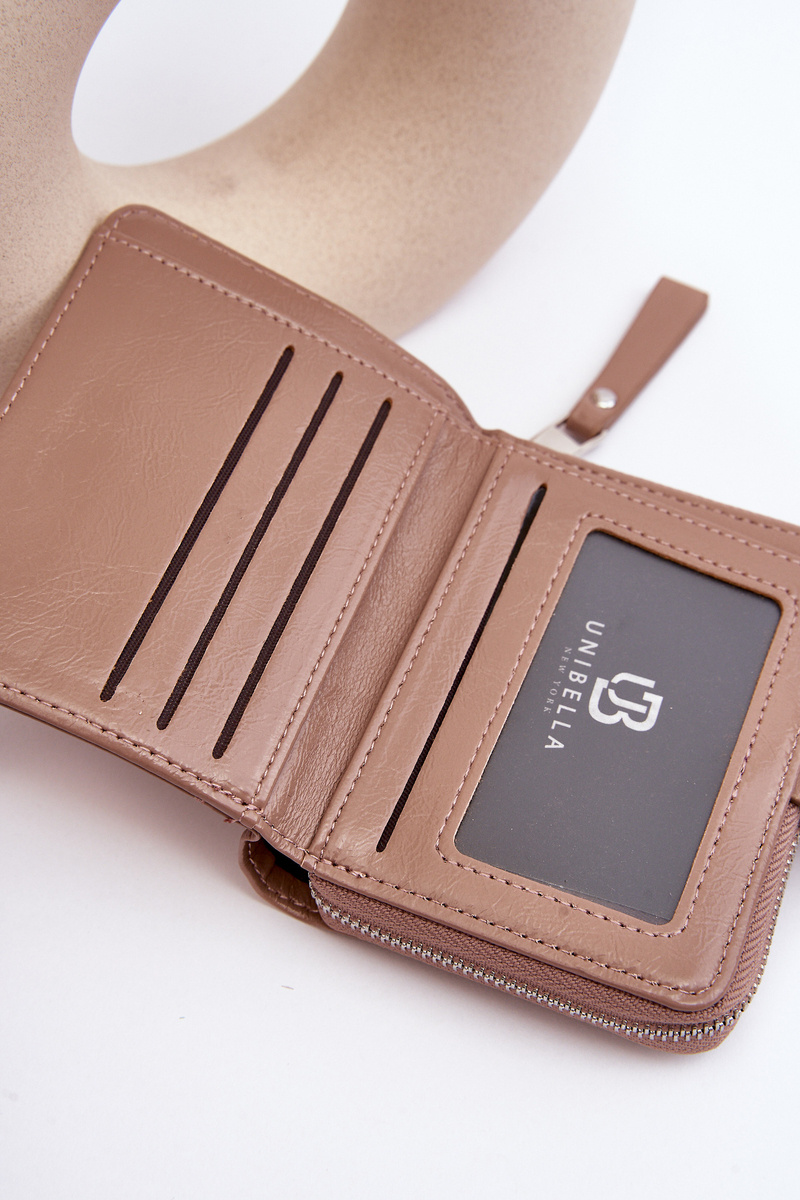 Elegancki, mały portfel damski wykonany z eko skóry. Zapinany na magnes. Model ten posiada zewnętrzną kieszeń na monety, zamykaną suwakiem, co ułatwia dostęp do drobnych pieniędzy. Model ten posiada również miejsce na banknoty i karty.