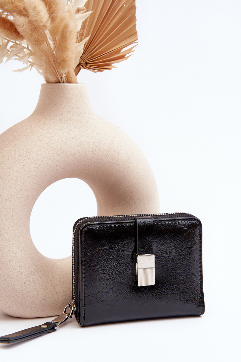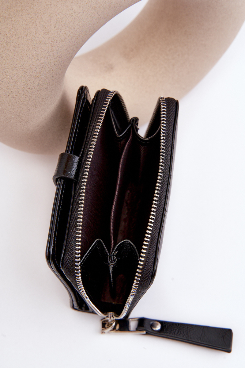 Damski Lakierowany Portfel Portmonetka Z Ekoskóry Czarny Zalirna