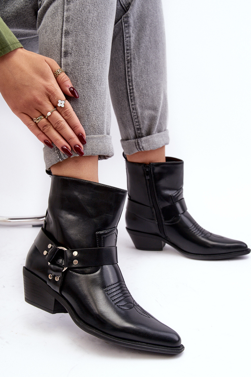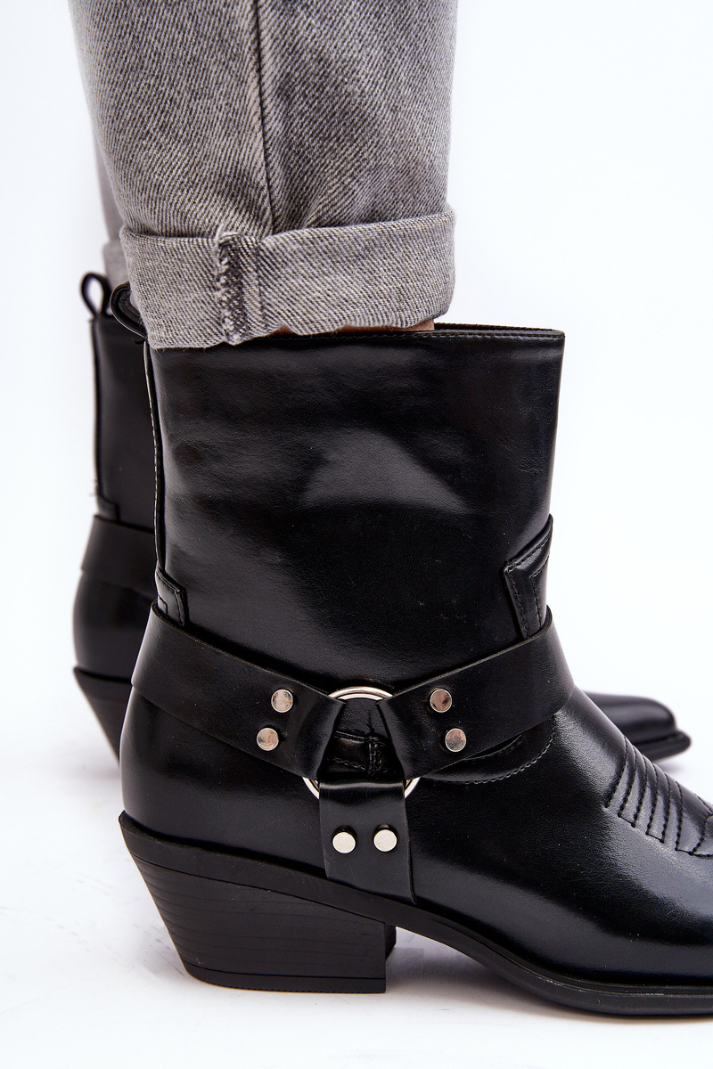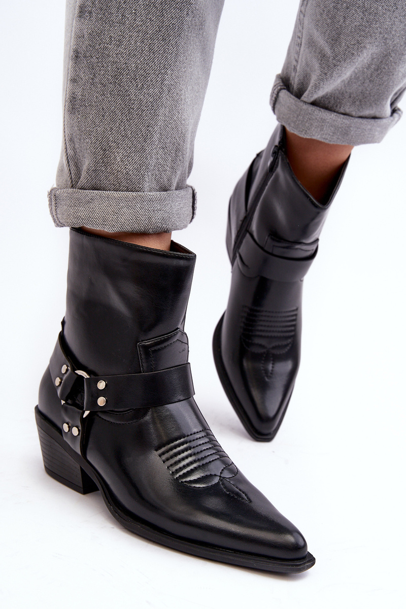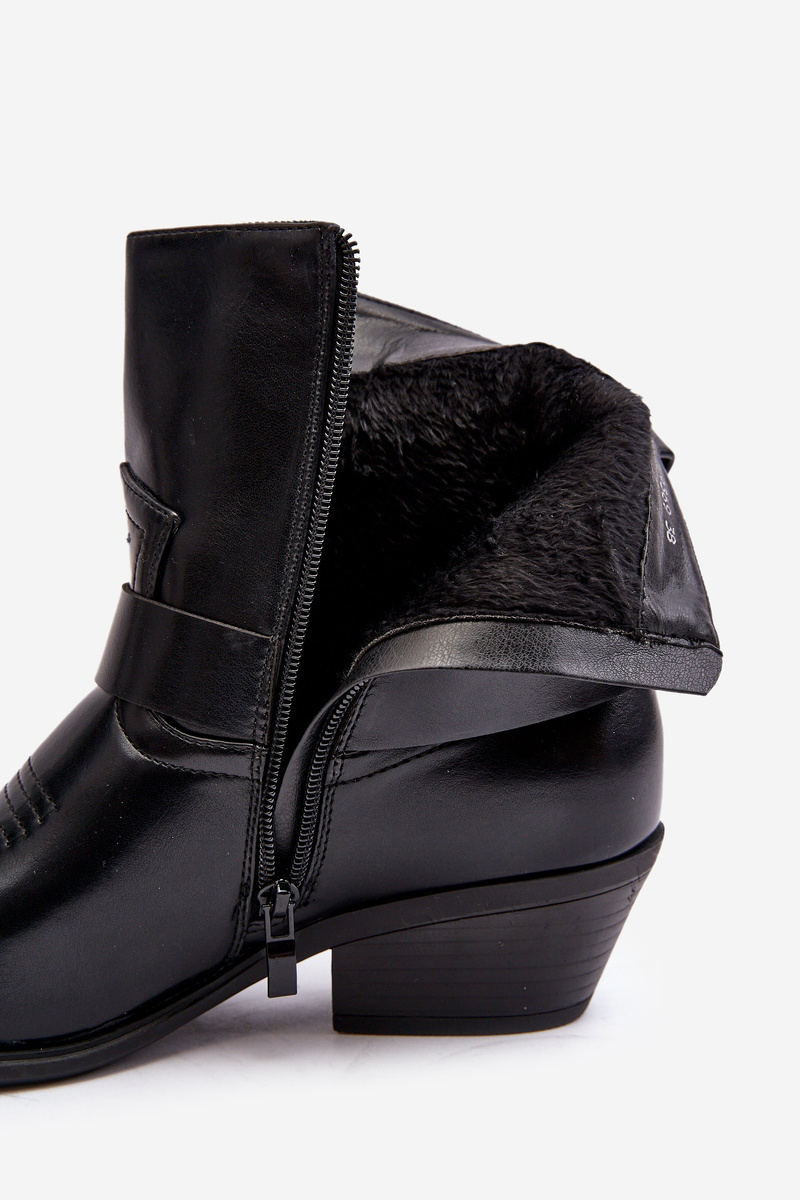 Damskie Ocieplane Botki Kowbojki Czarne Venosa
