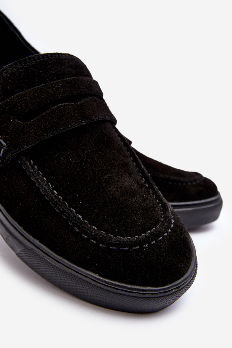 Zamszowe Męskie Półbuty Loafersy Zazoo 1574 Czarne