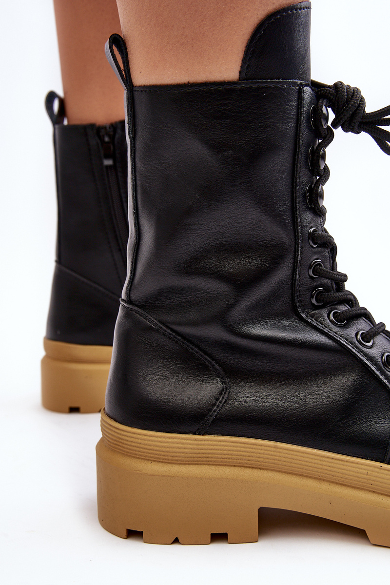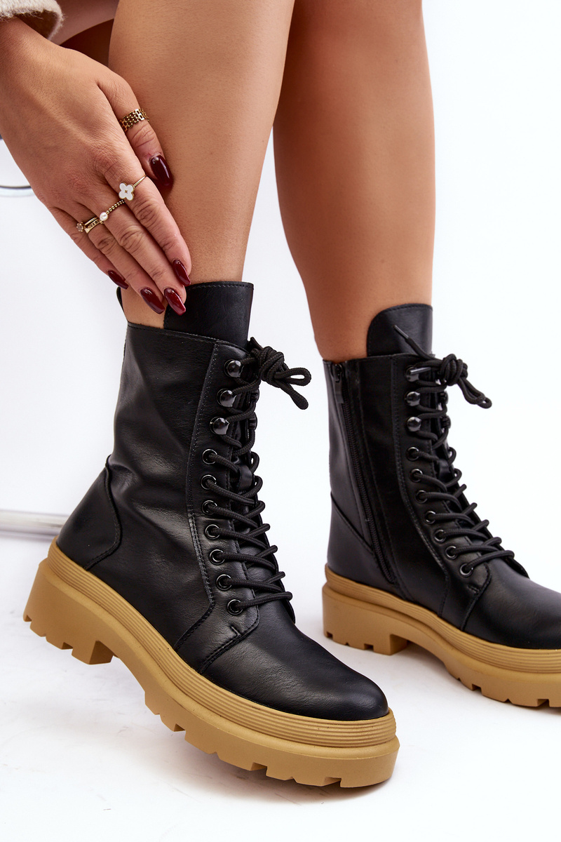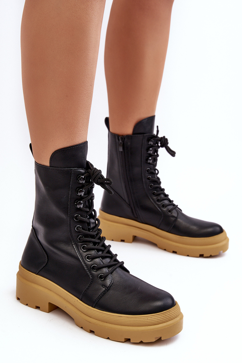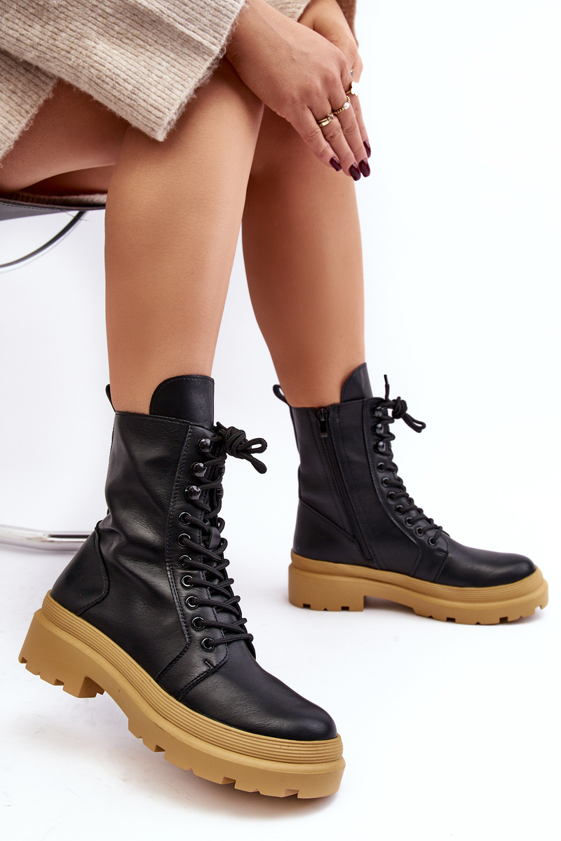 Botki Workery Damskie Ekoskóra Czarne Irande - Jasna Podeszwa