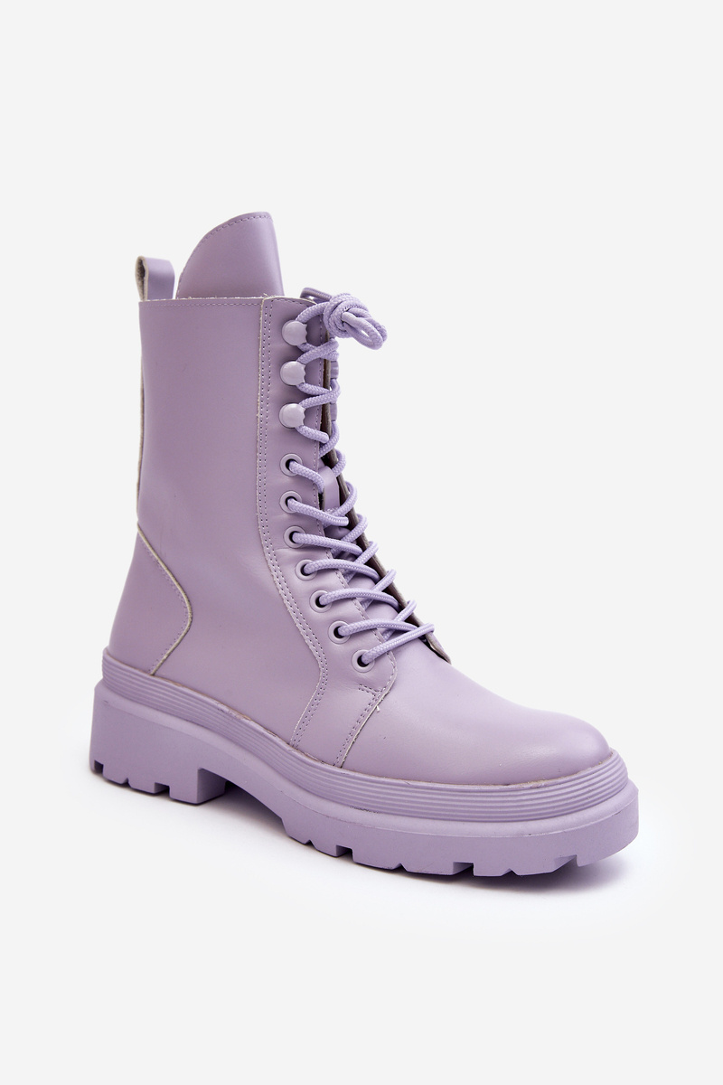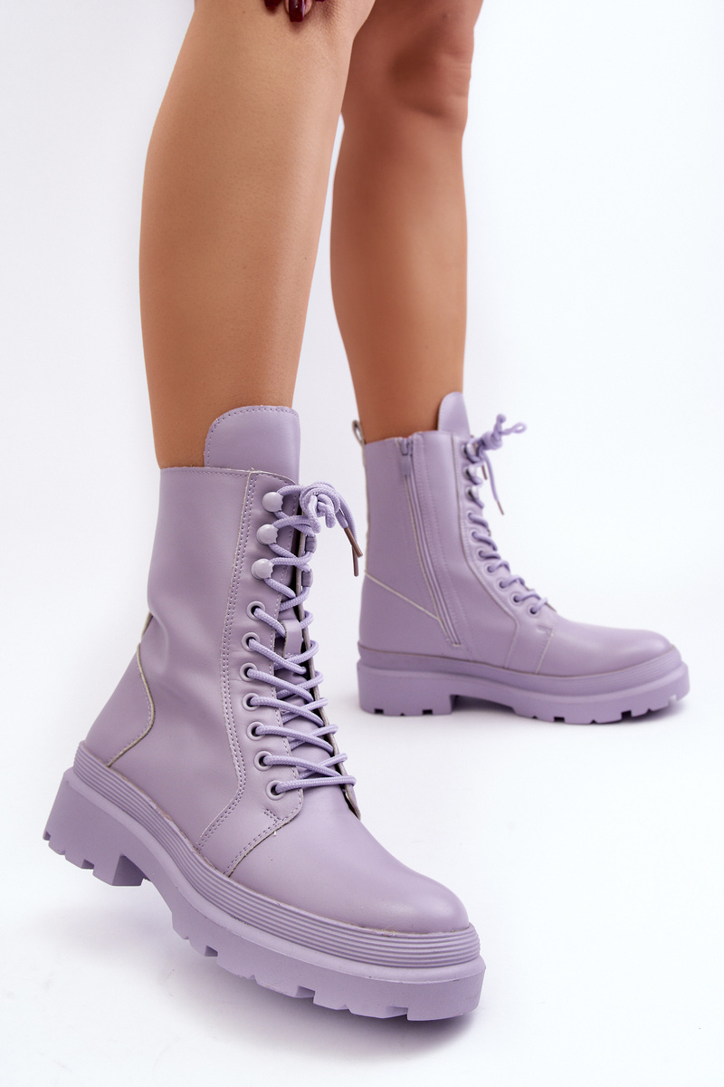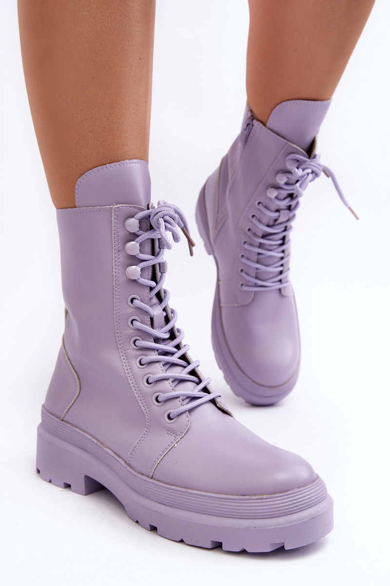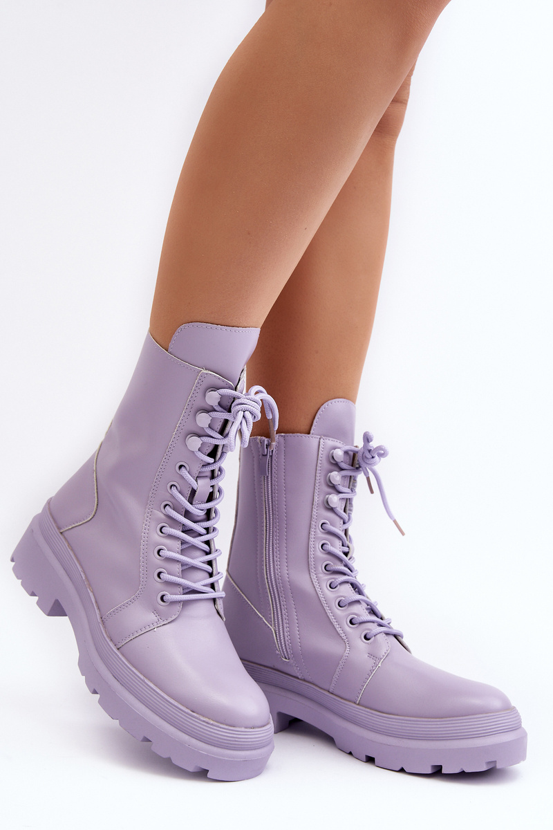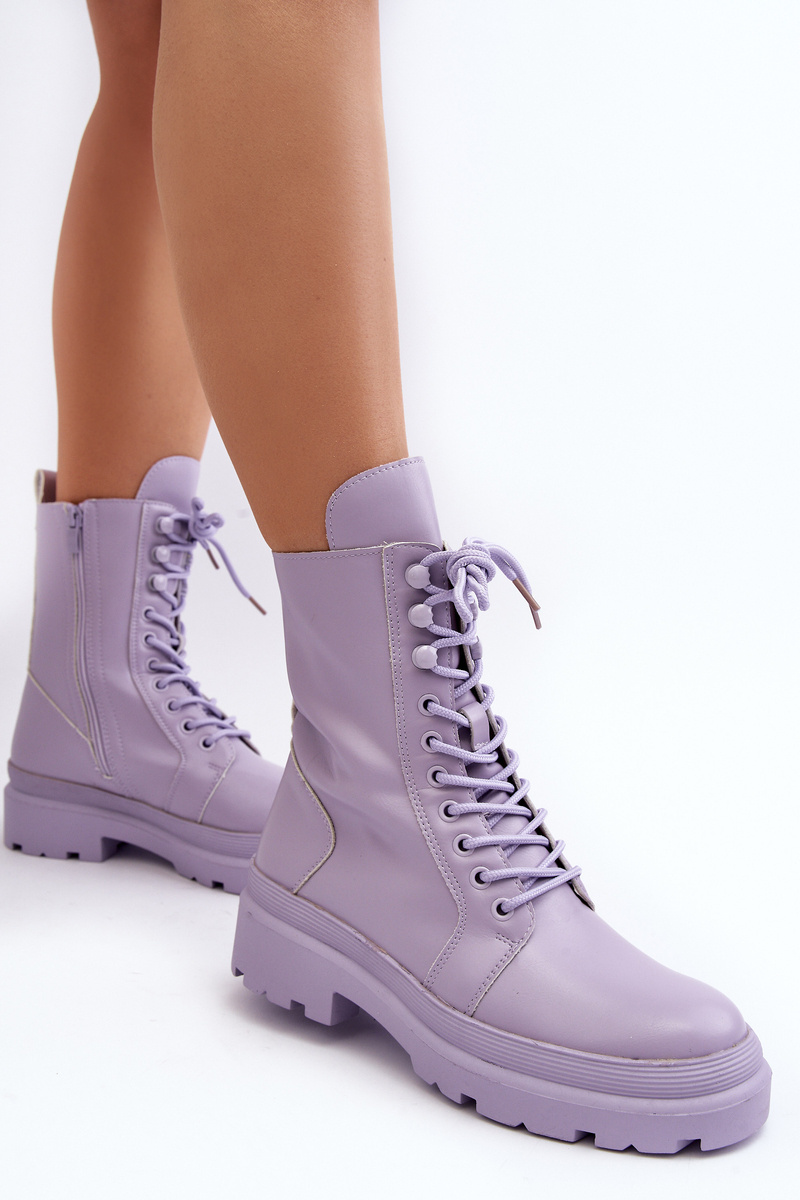 Botki Workery Damskie Ekoskóra Fioletowe Irande