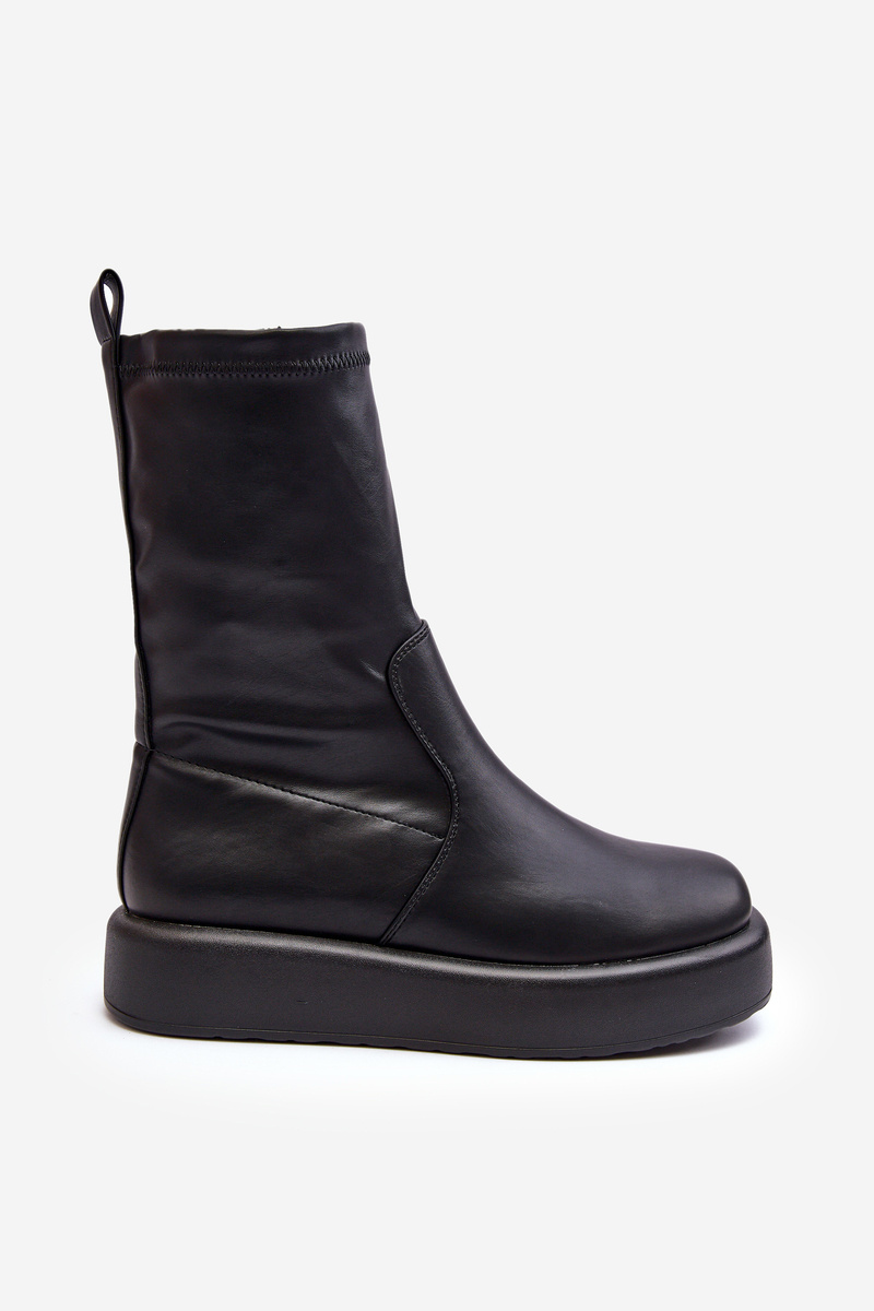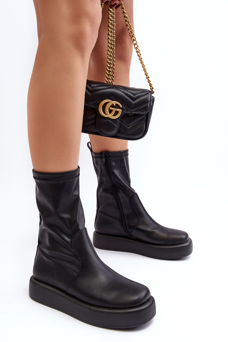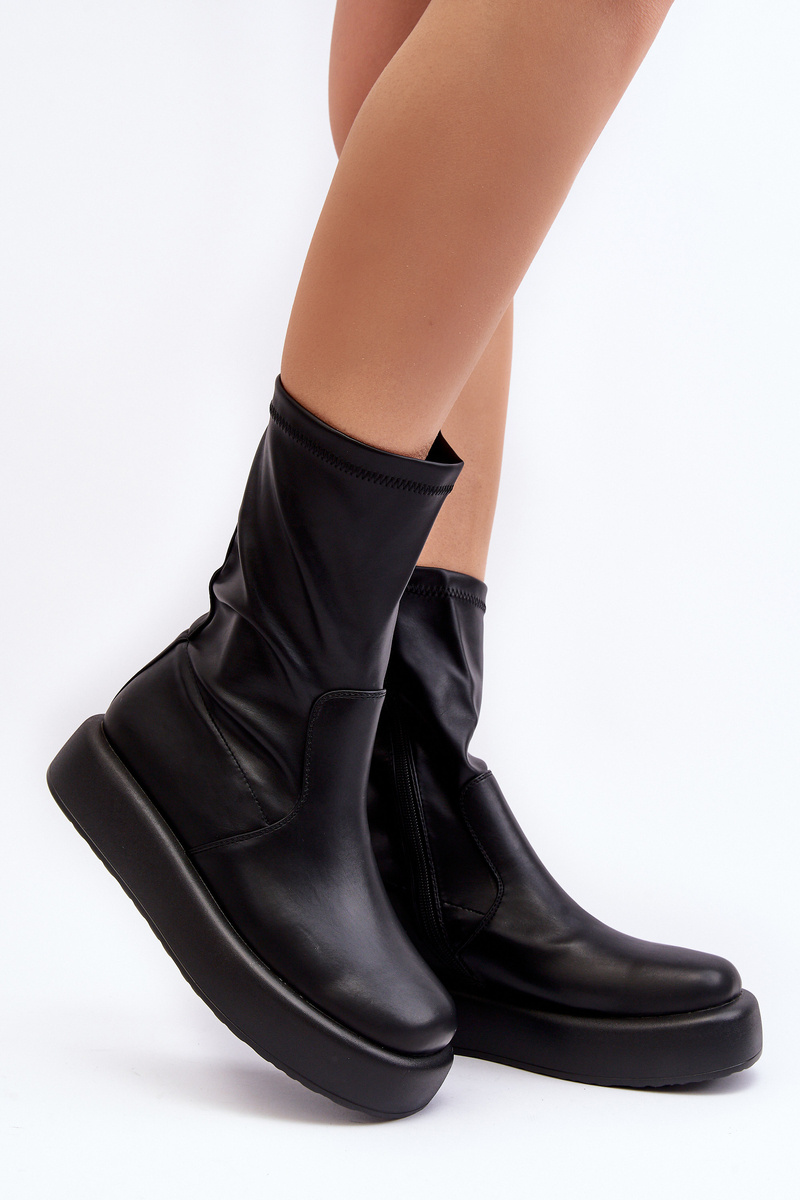 Damskie Botki Na Platformie Ekoskóra Czarne Algedi