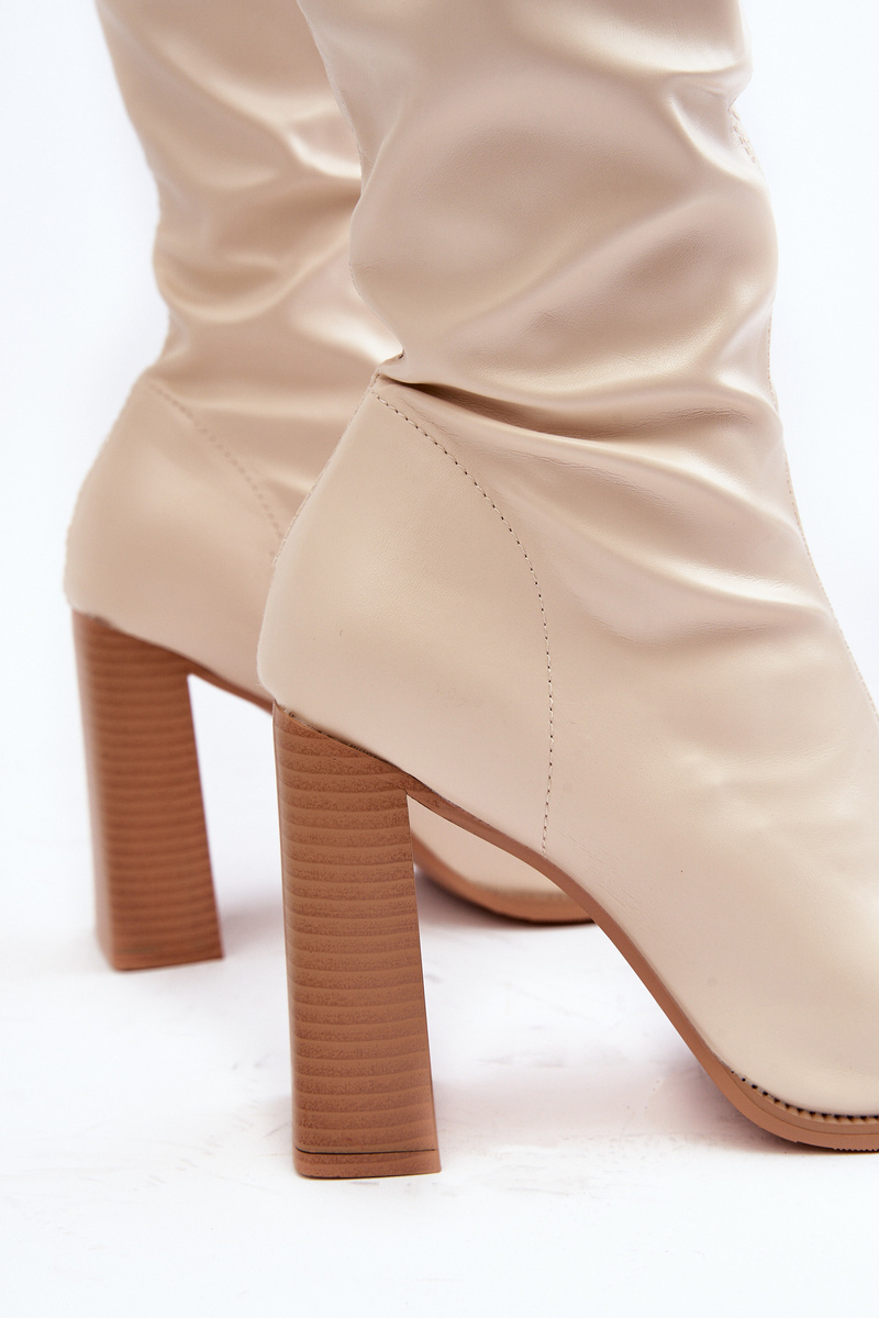 Damskie Kozaki Za kolano Na Słupku Ekoskóra Beżowe Orcella