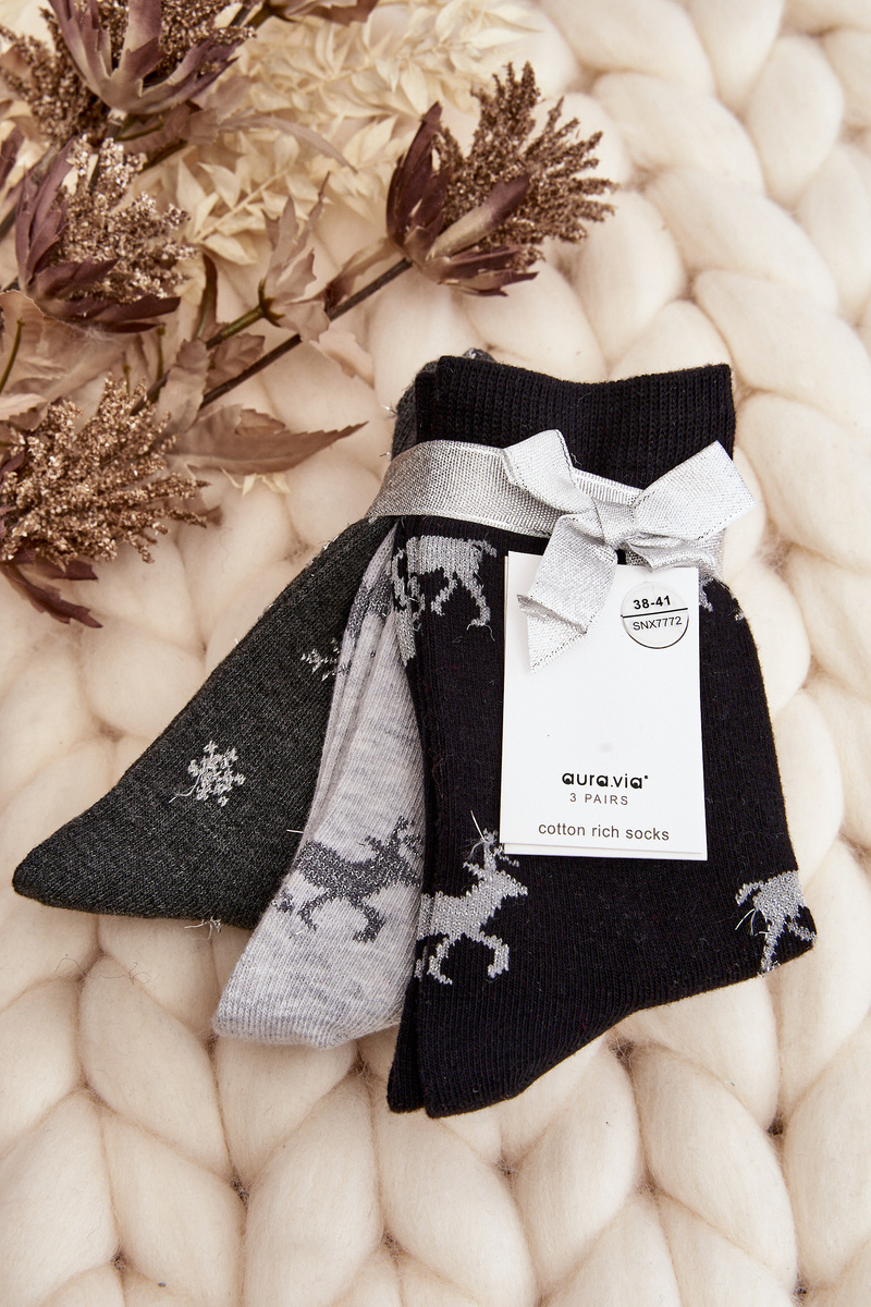 Damskie Świąteczne Skarpetki 3-Pak Szaro-Czarne