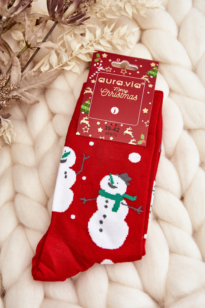 Męskie Świąteczne Bawełniane Skarpetki Z Bałwanami Czerwone