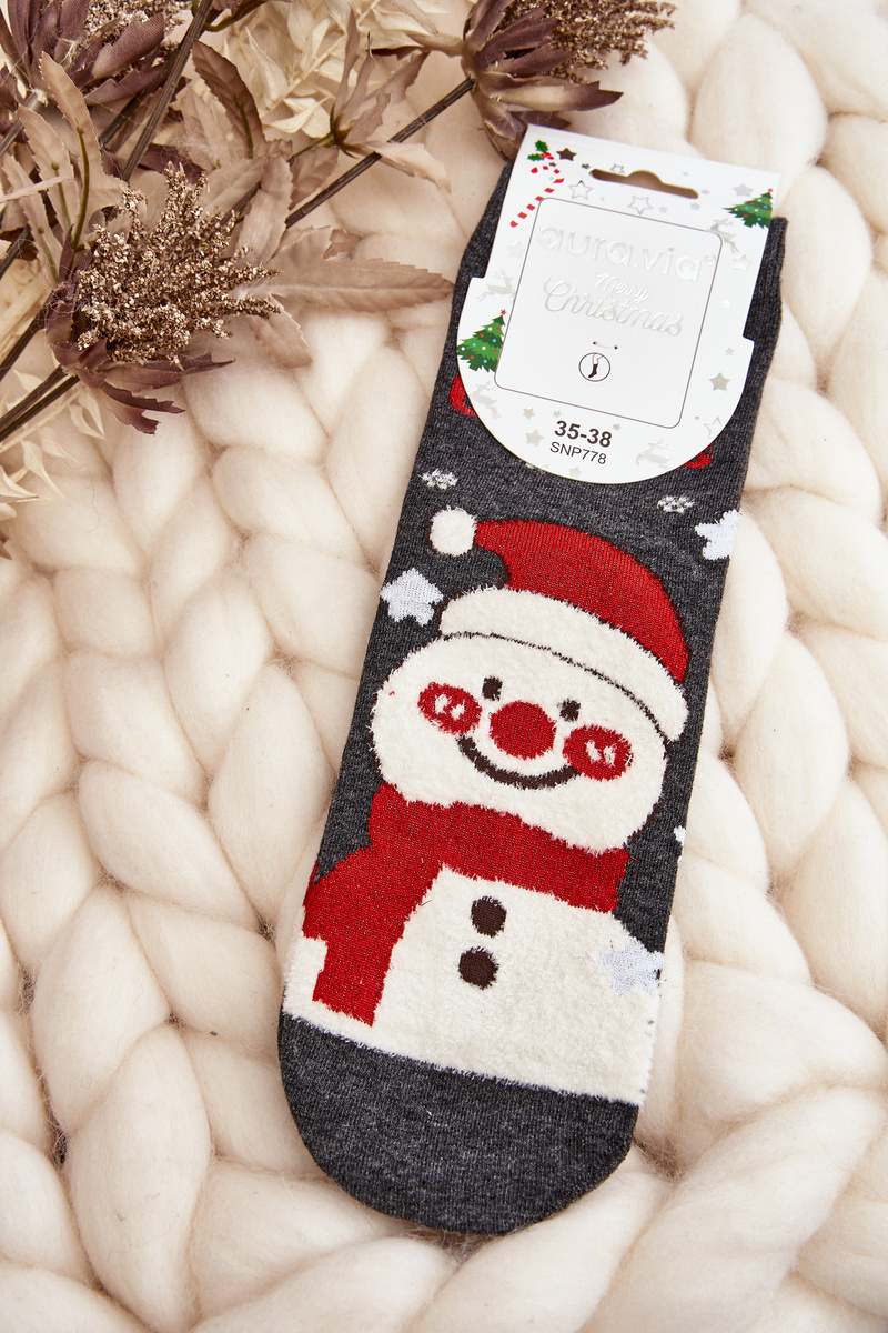 Damskie Świąteczne Skarpety Z Bałwanem Szare
