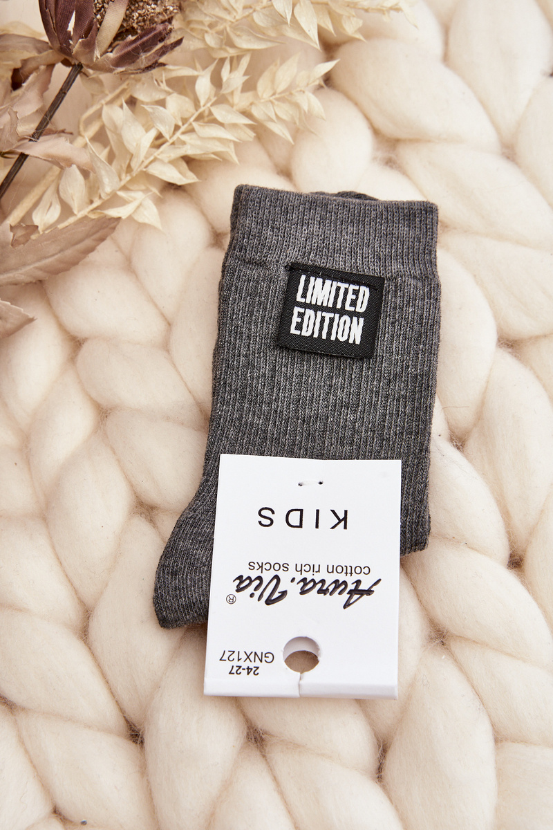 Dziecięce Gładkie Skarpetki Z Naszywką Szare