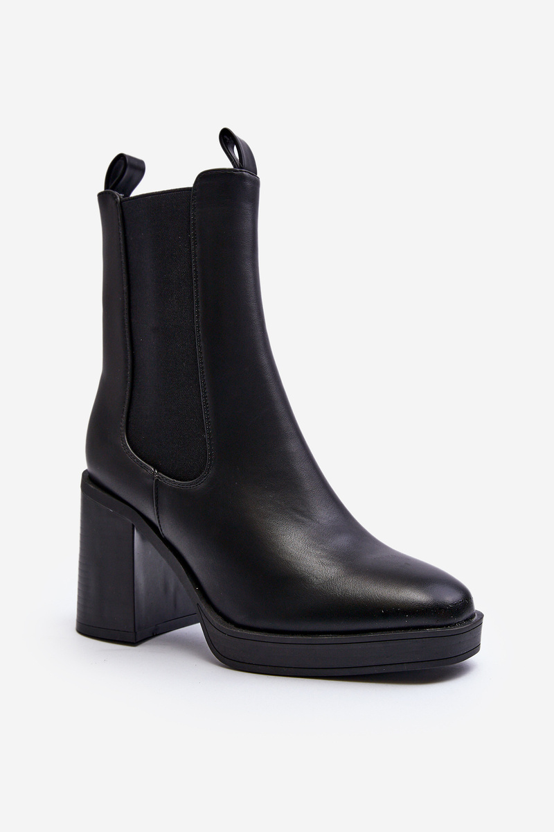 Botki Damskie Na Masywnym Obcasie Czarne Piovere