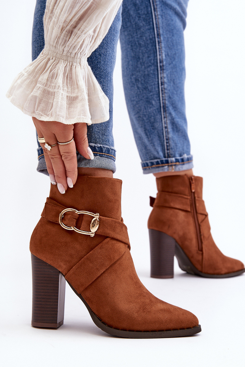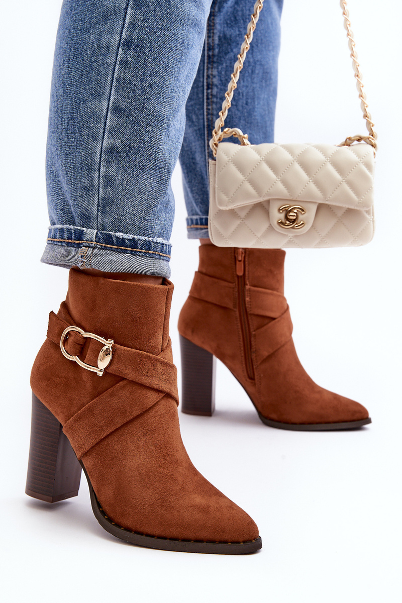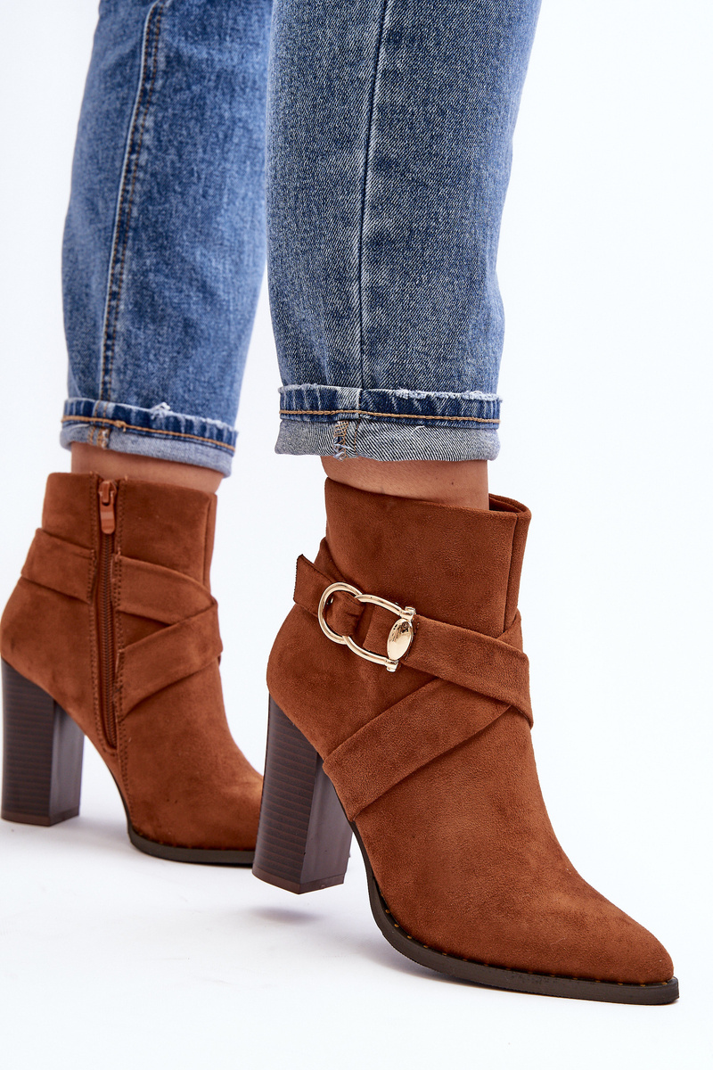 Botki Zamszowe Na Słupku Z Klamrą Camel Eftane