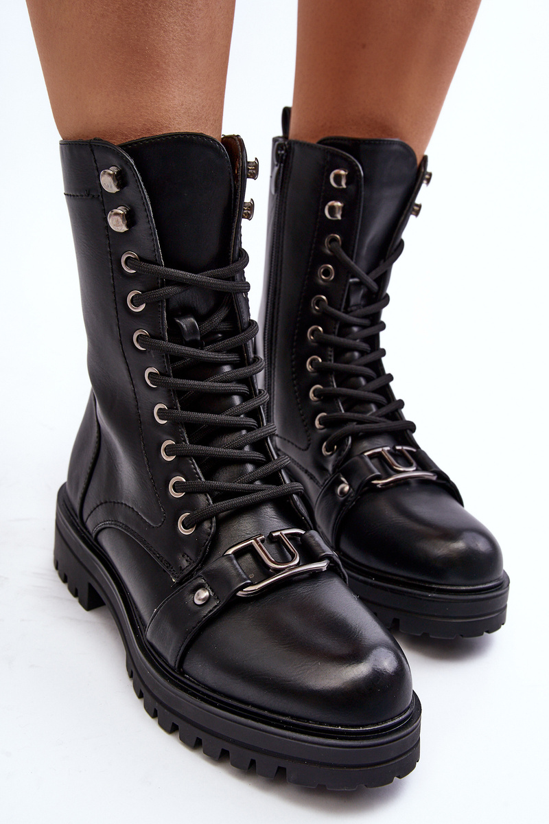 Damskie Botki Workery Z Ozdobą Czarne Belluxe