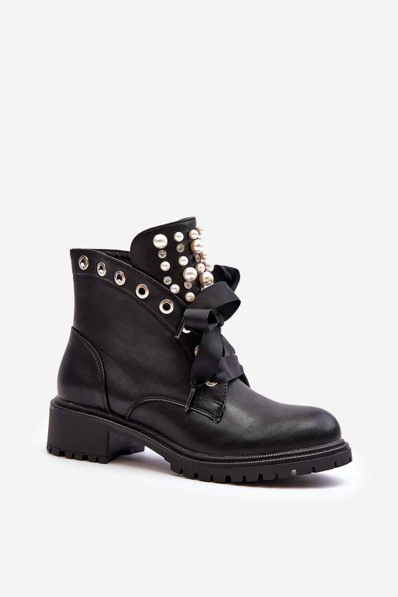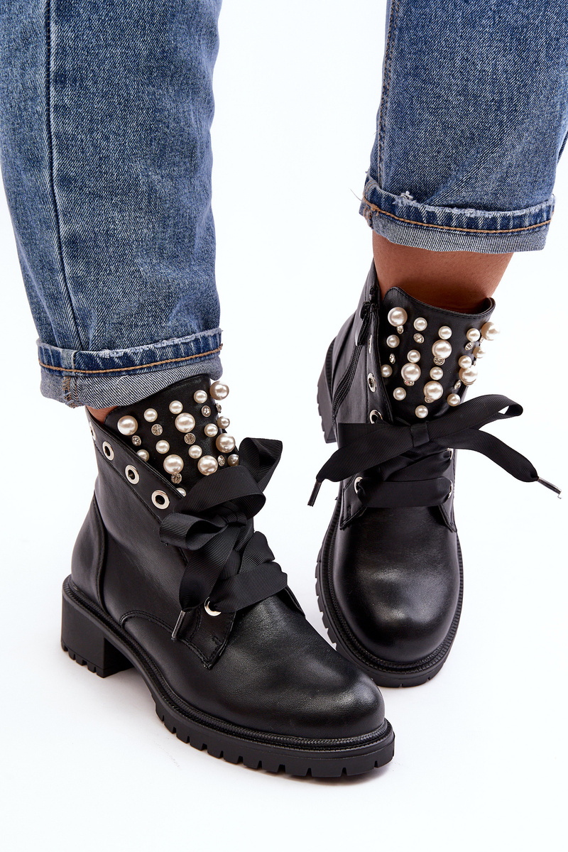 Zdobione Botki Damskie Na Suwak Czarne Elonte