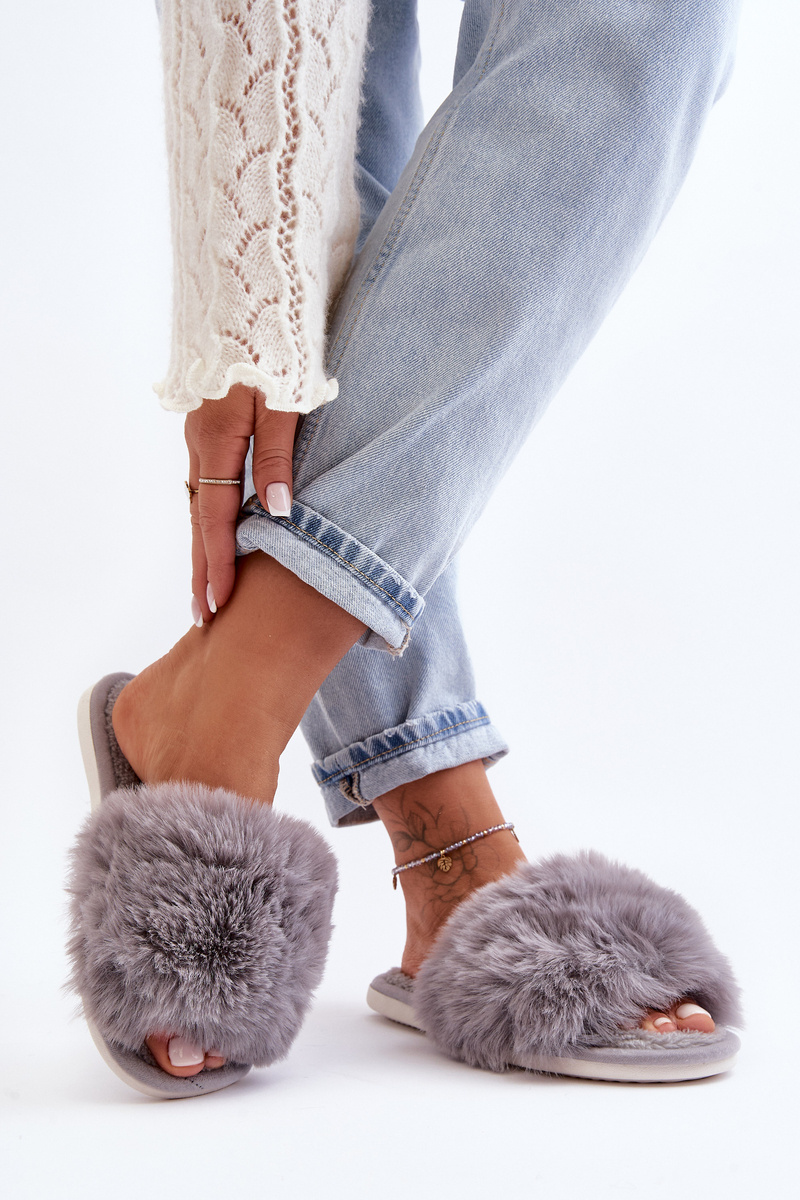 Kapcie Damskie Z Futerkiem Szare Vienitta