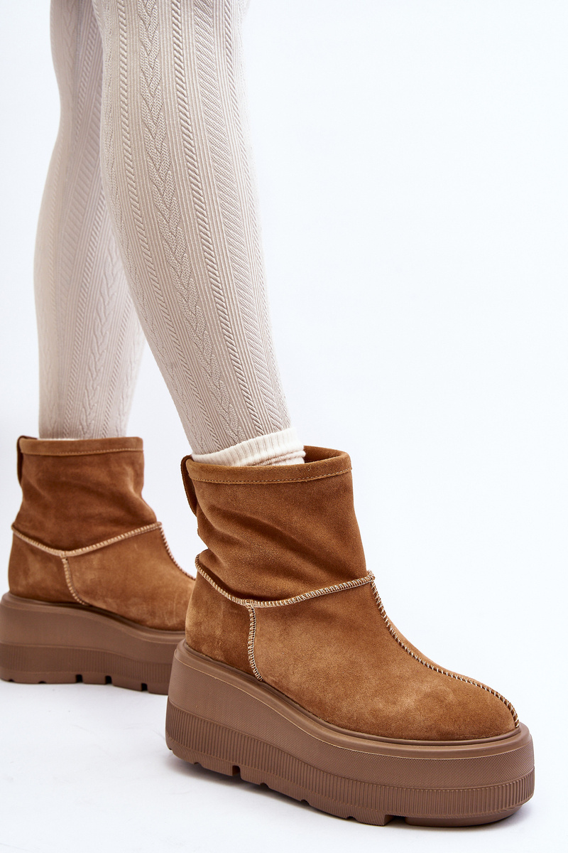 Skórzane Damskie Botki Na Masywnej Podeszwie Camel Zazoo 3424