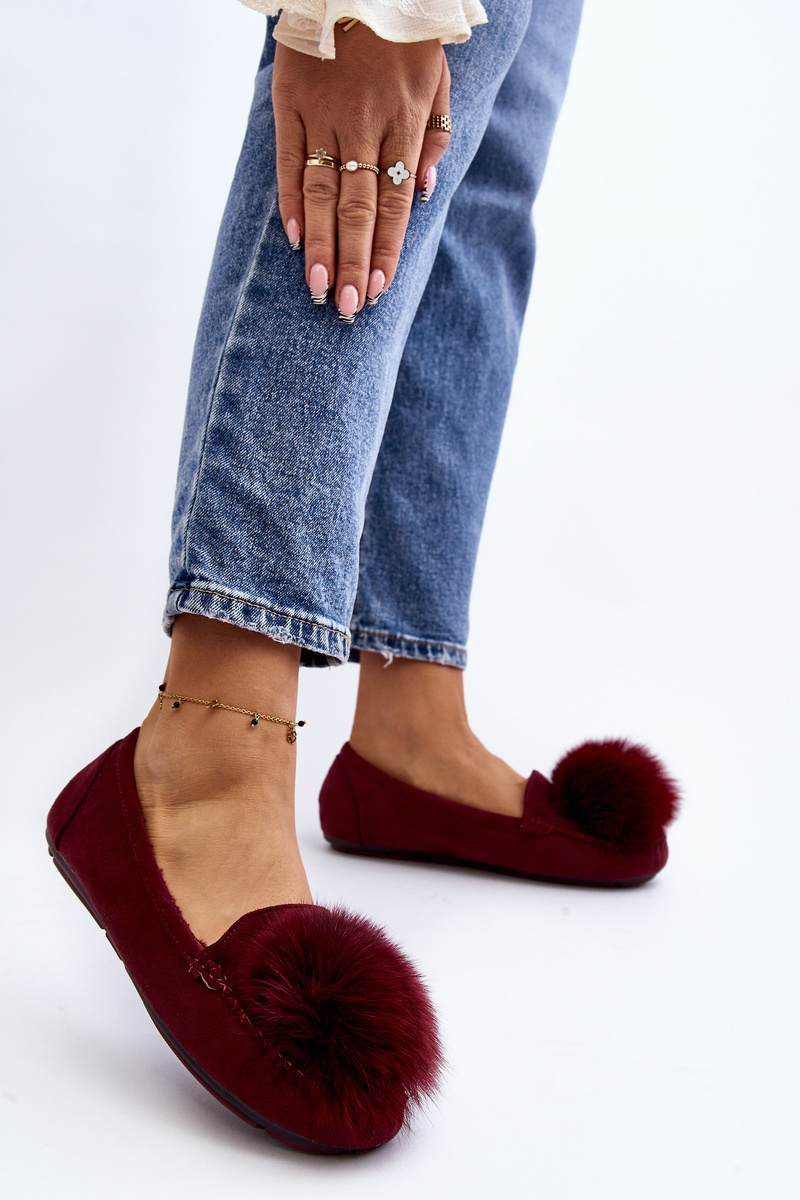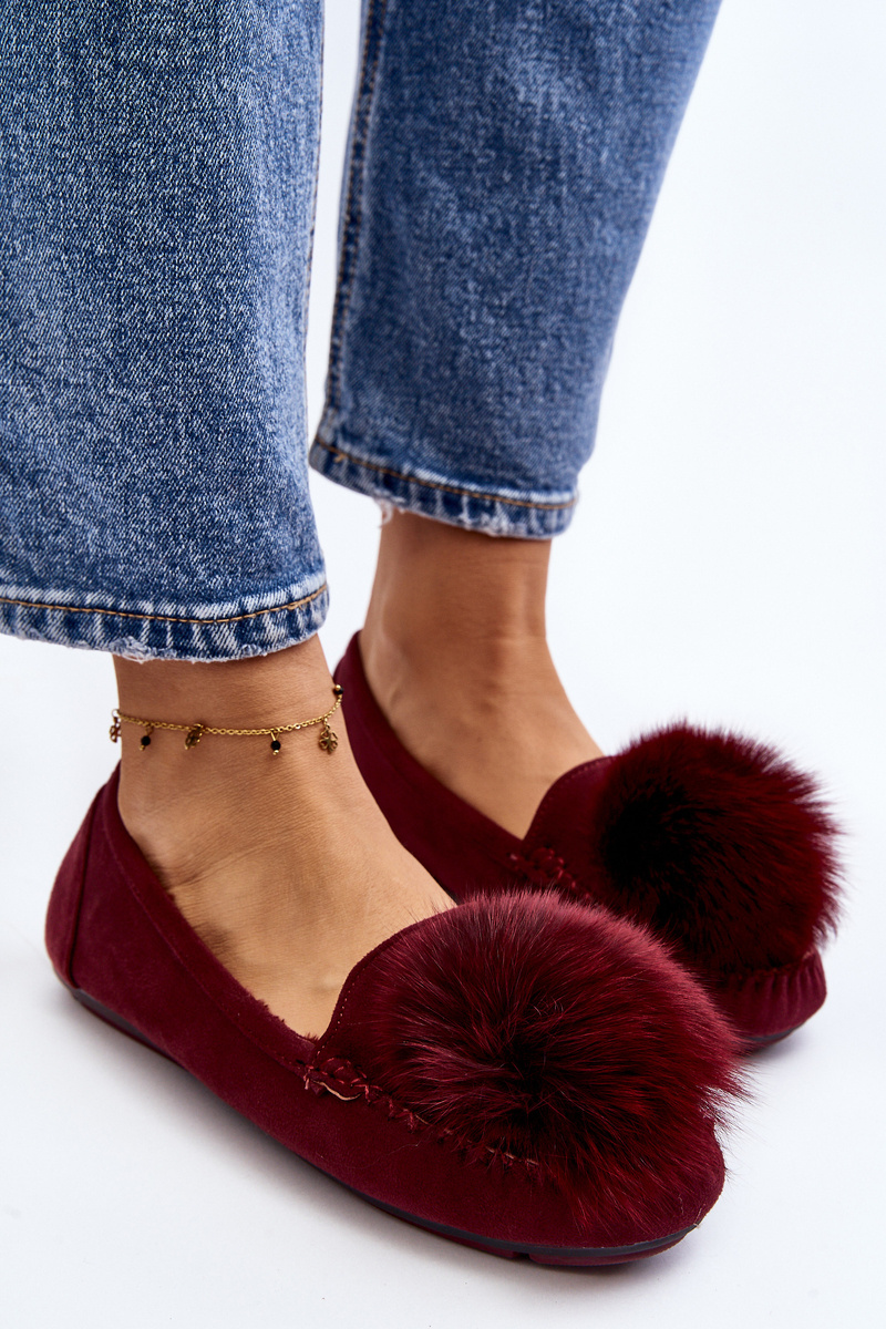 Damskie Mokasyny Z Futerkiem Bordowe Novas