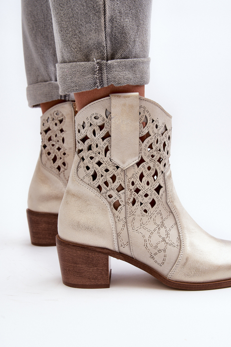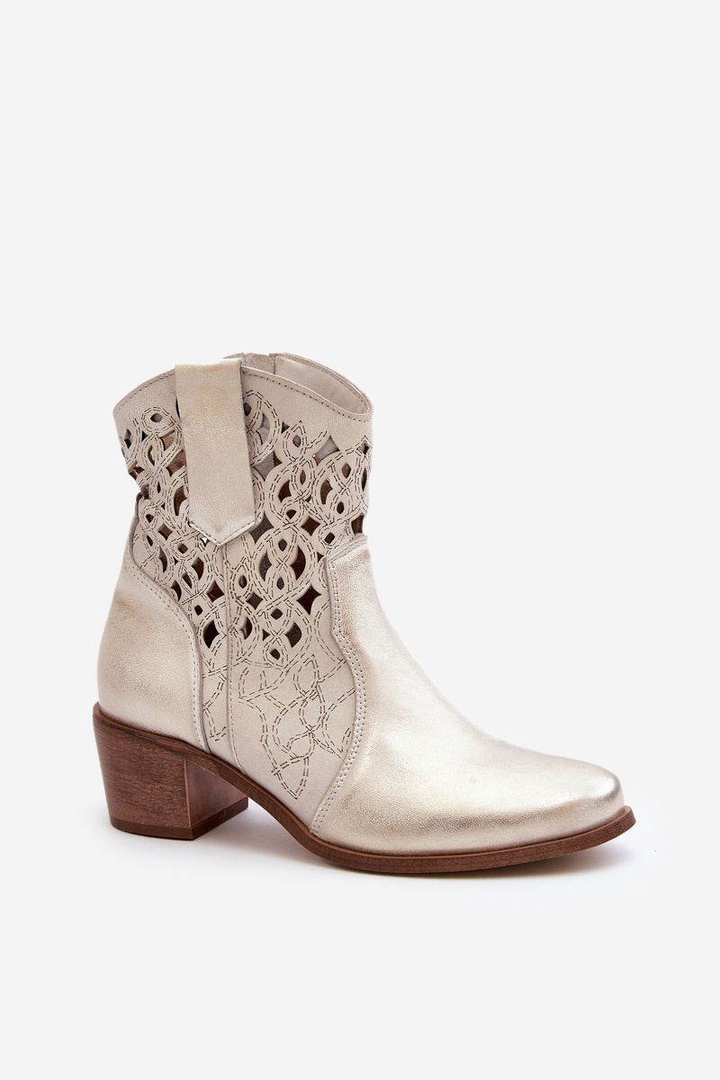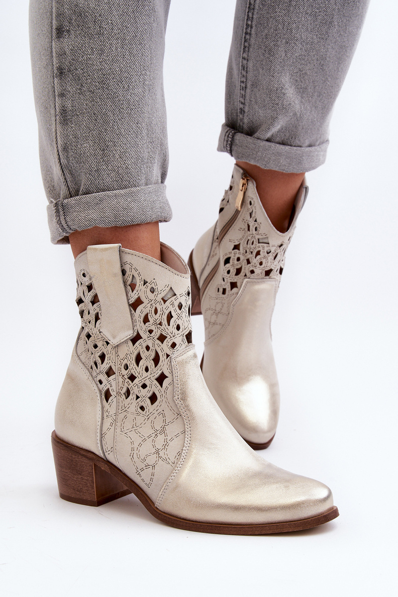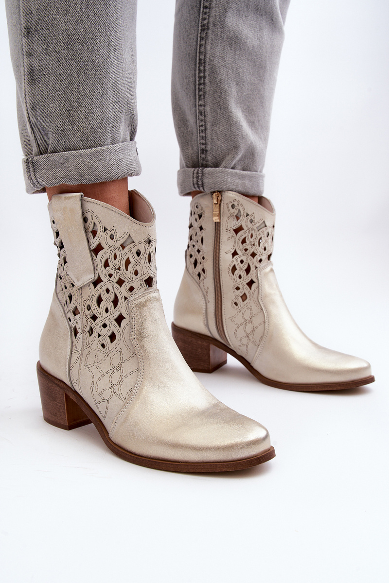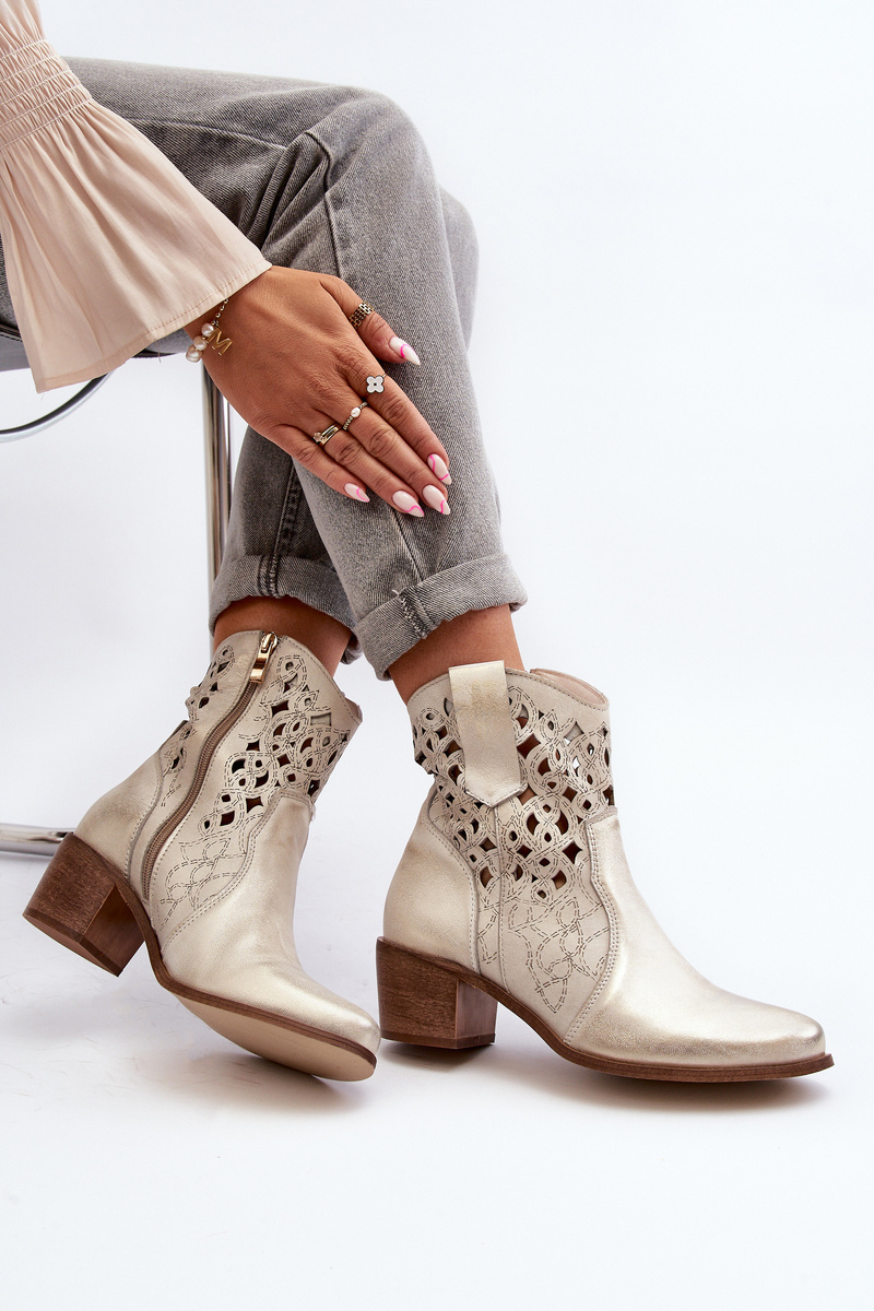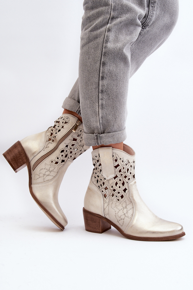 Zazoo 3394 Damskie Botki Na Obcasie Ażurowe Złote