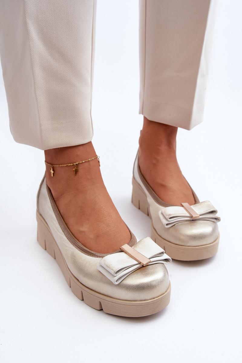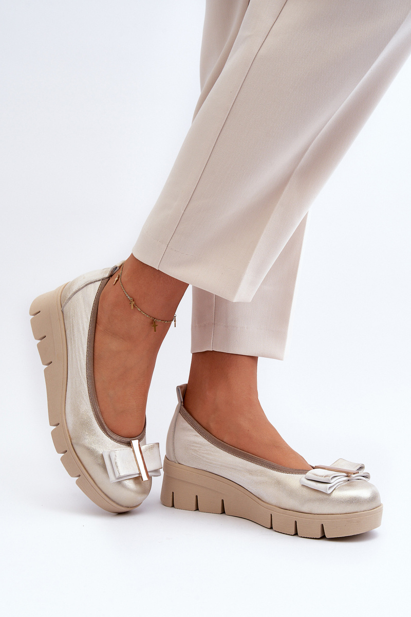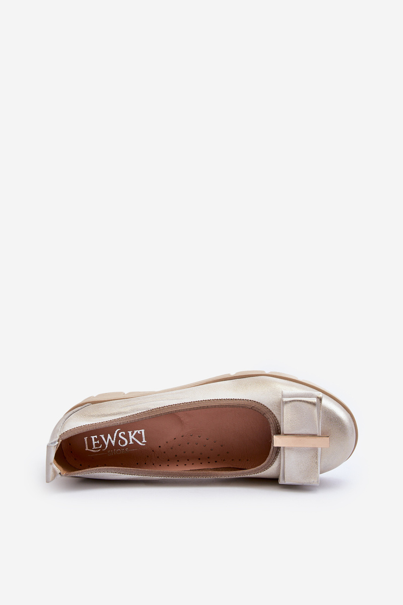 Baleriny Skórzane Na Platformie Z Ozdobą Złote Lewski 3384