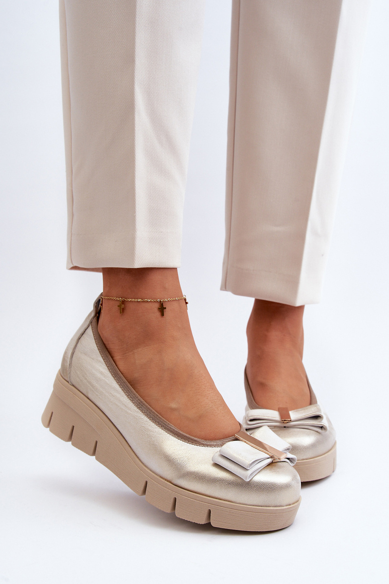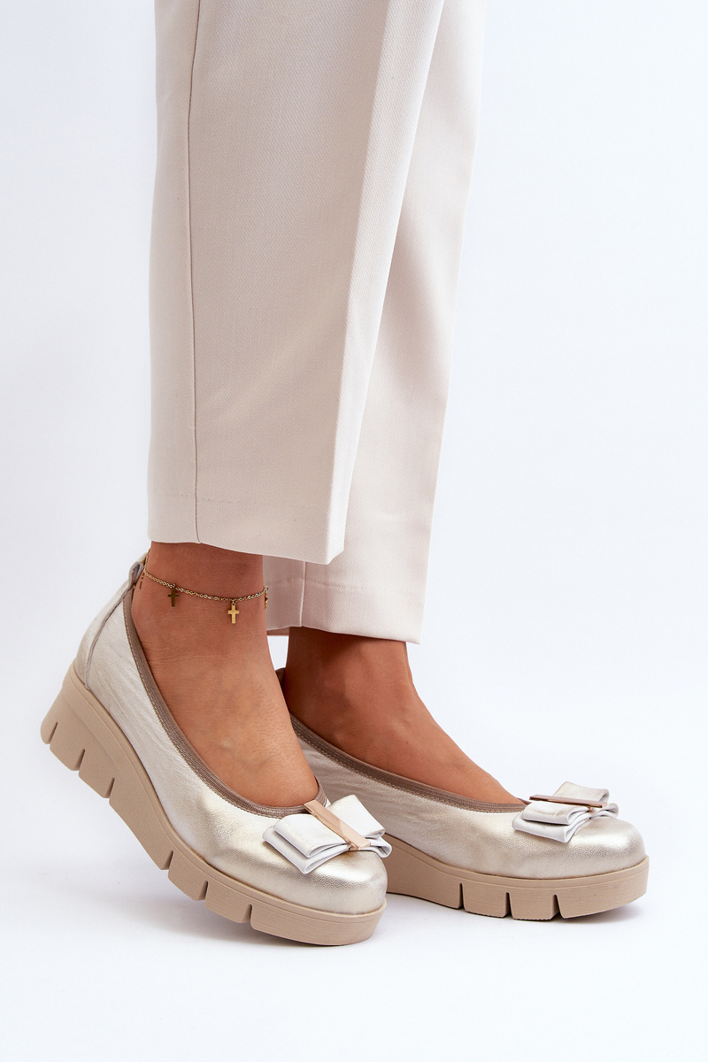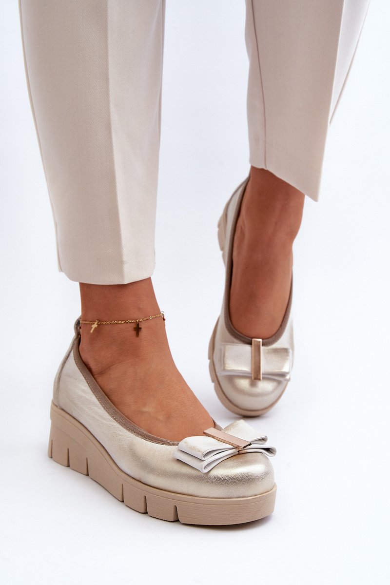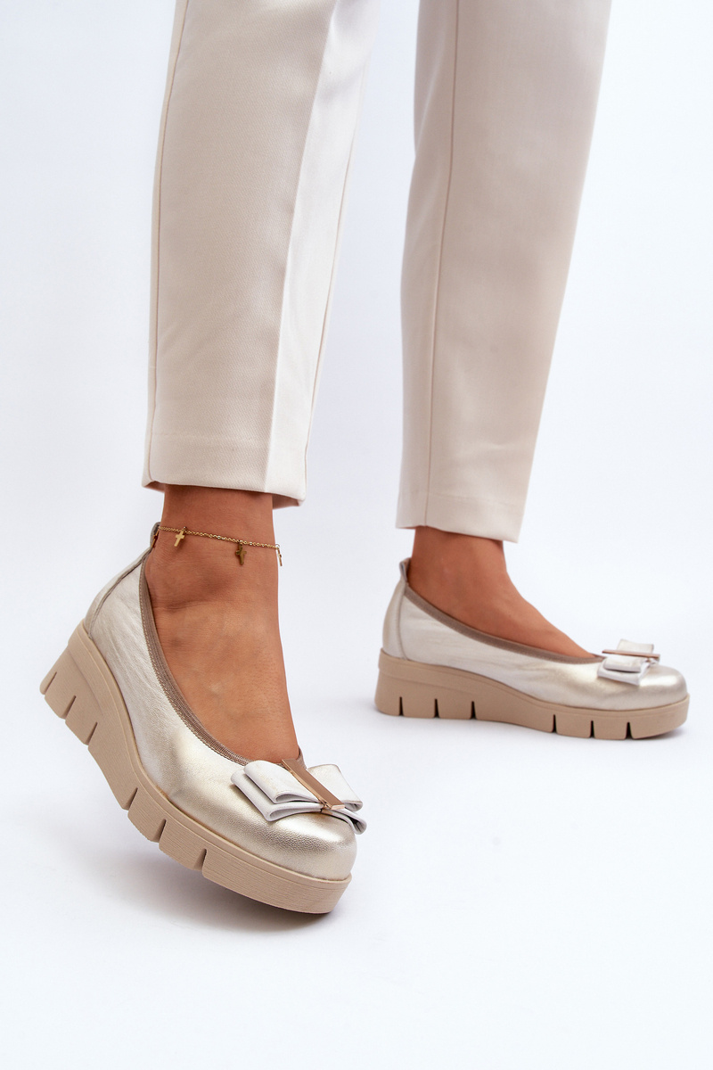 Baleriny Skórzane Na Platformie Z Ozdobą Złote Lewski 3384