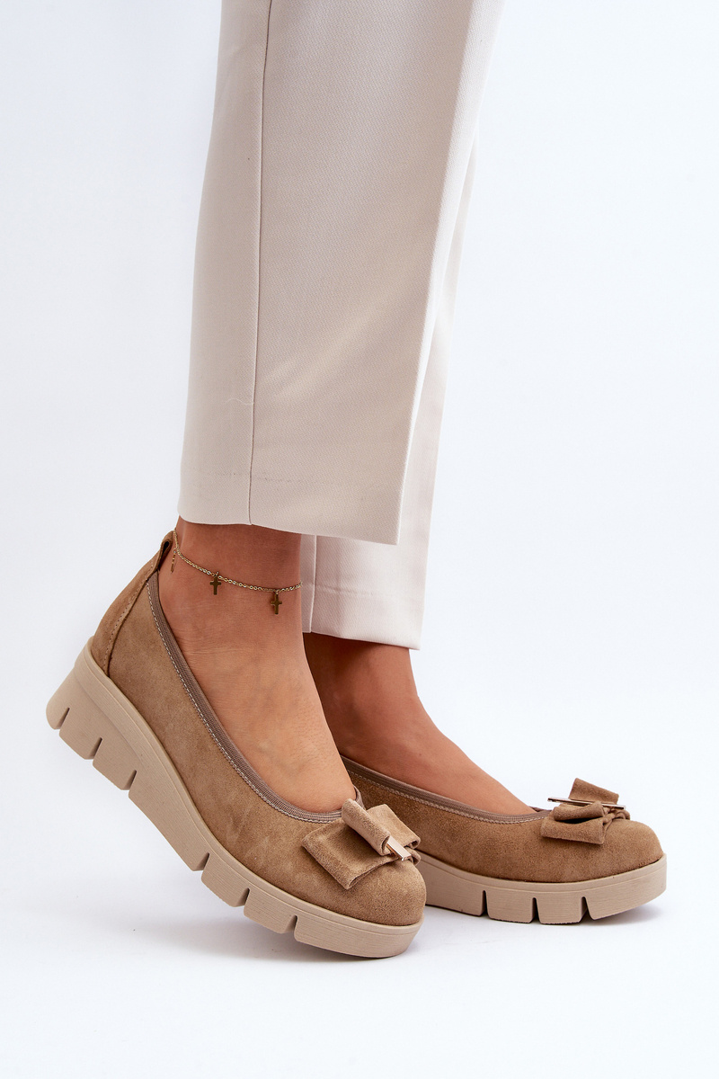 Baleriny Skórzane Na Platformie Z Ozdobą Ciemno Beżowe Lewski 3384