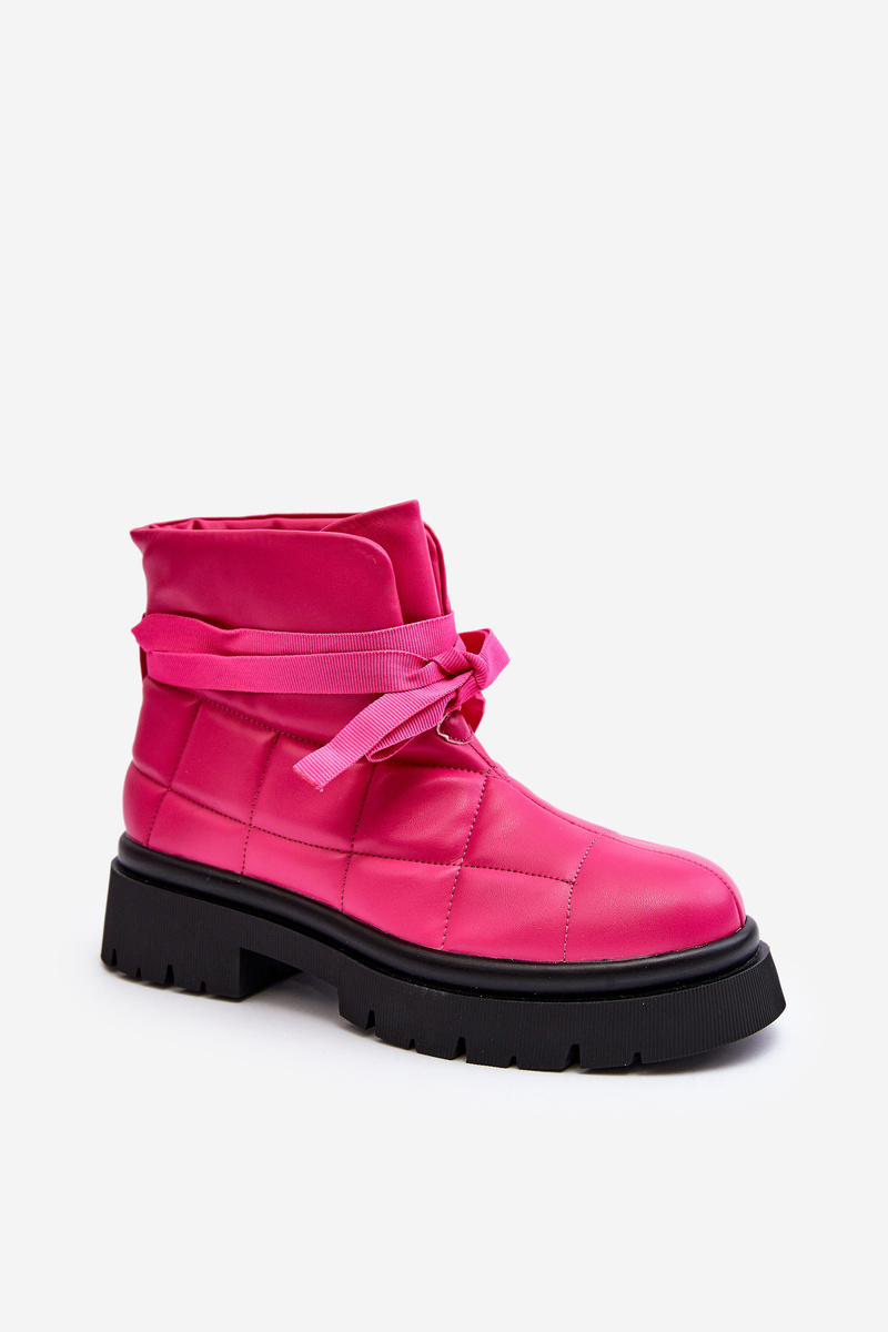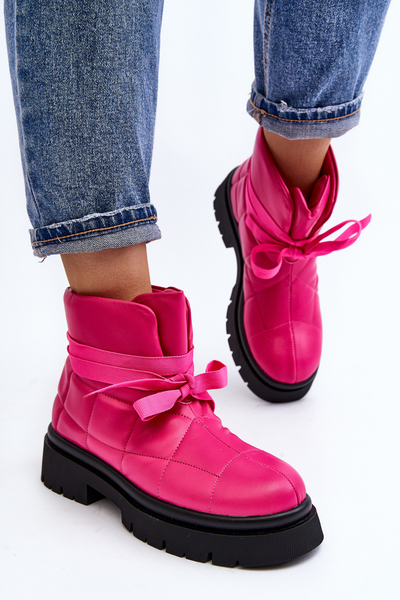 Damskie Botki Z Pikowaniem I Wiązaniem Różowe Bizzanti
