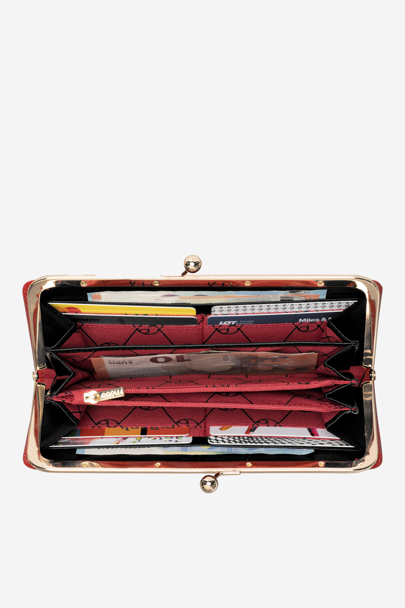 Lakierowany Duży Portfel Damski Nobo NPUR-LR0061-C005 Czerwony