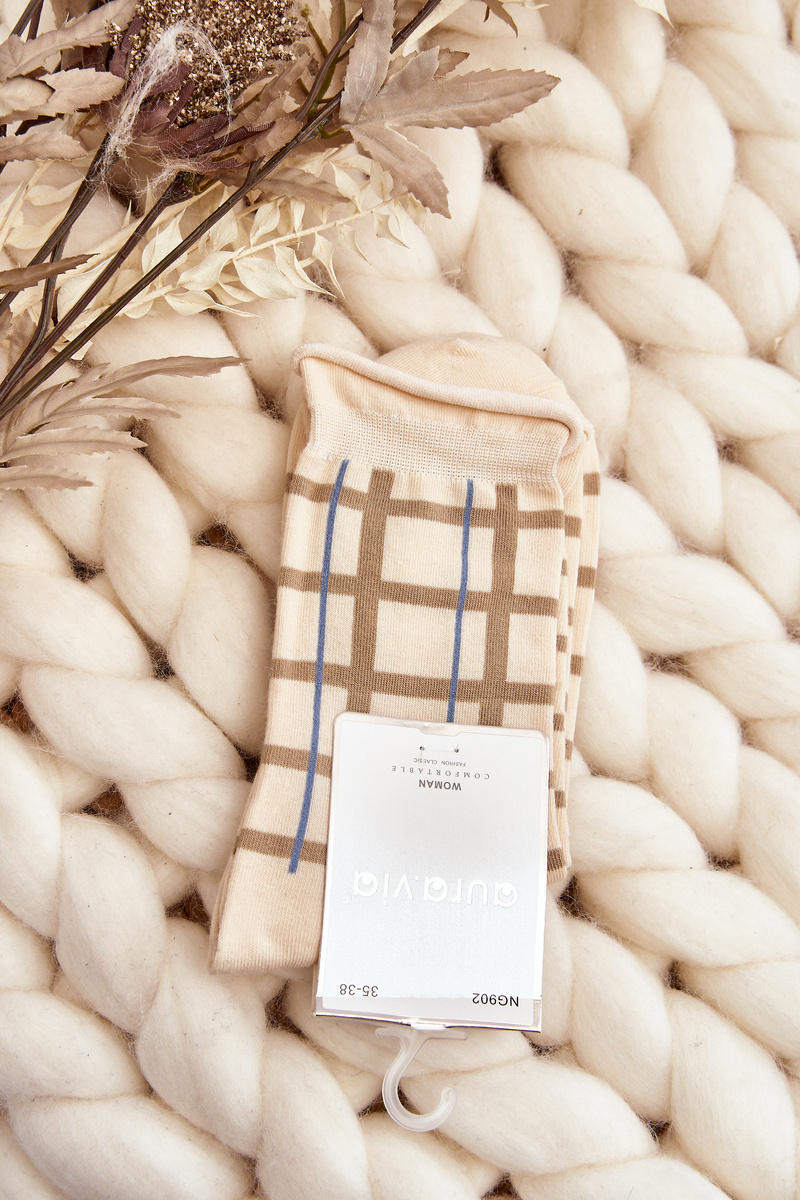 Skarpety Damskie We Wzory Kratka Jasnobeżowe