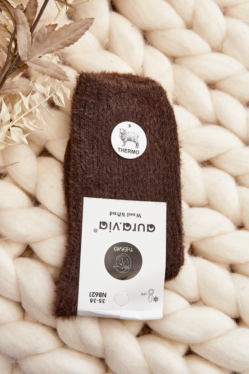 Ciepłe Gładkie Skarpety Damskie Alpaka Brązowe