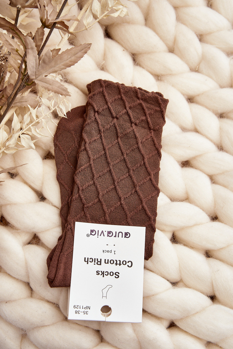 Skarpety Damskie Z Ozdobnym Tłoczeniem Brązowe