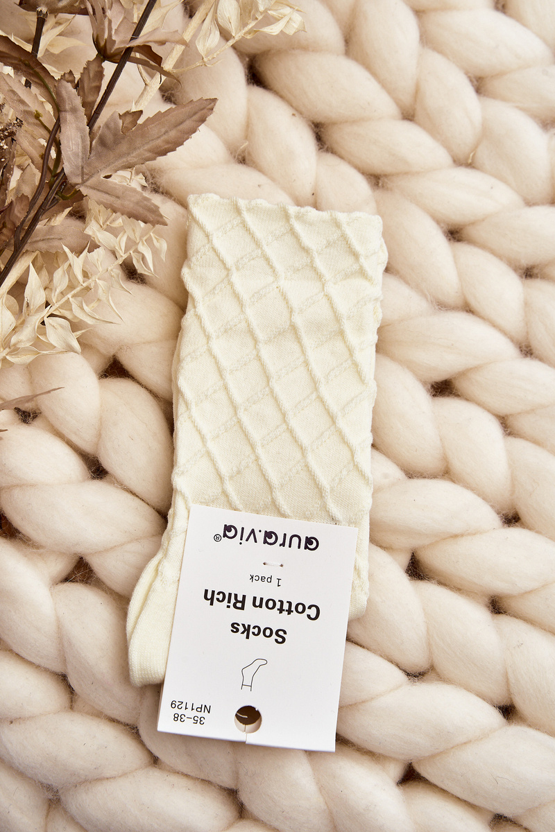 Skarpety Damskie Z Ozdobnym Tłoczeniem Kremowe
