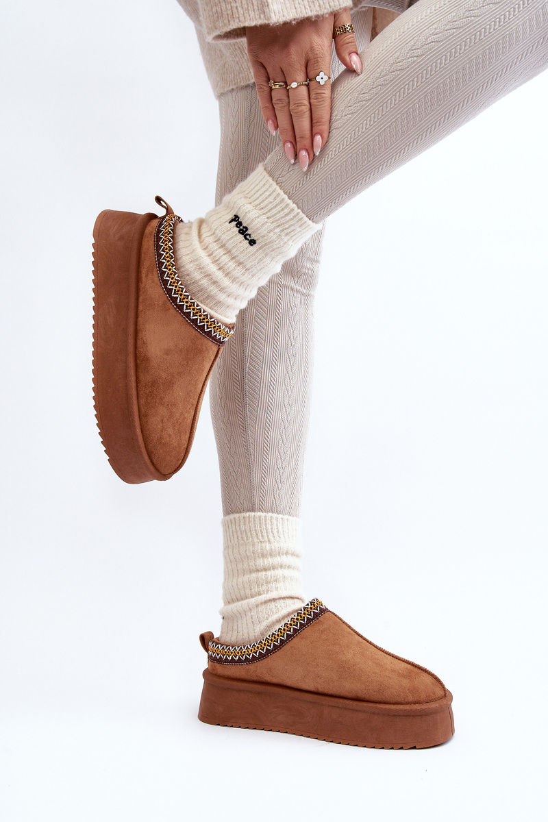 Kapcie Na Grubej Podeszwie Z Eko Zamszu Camel Sylva