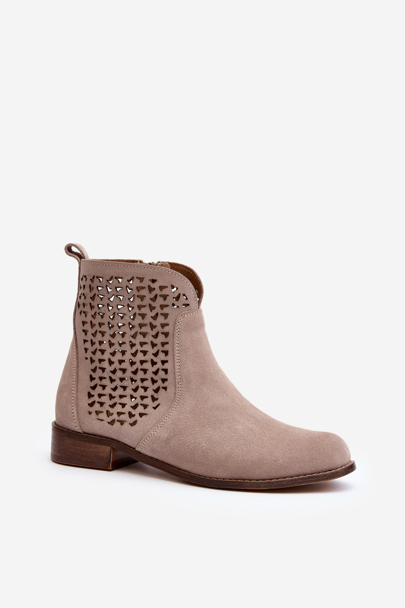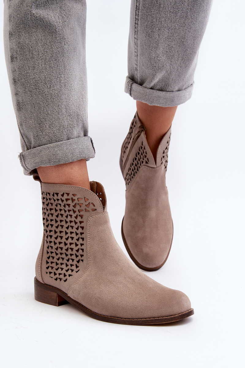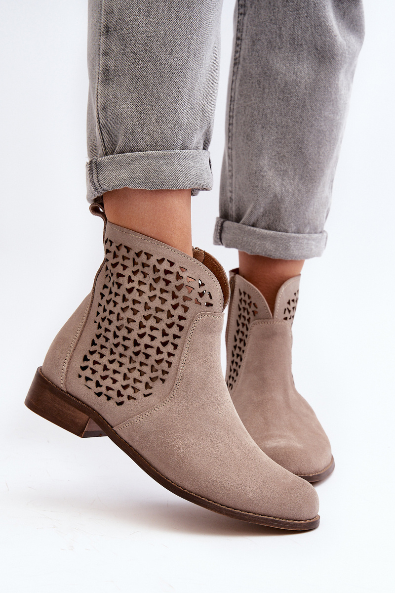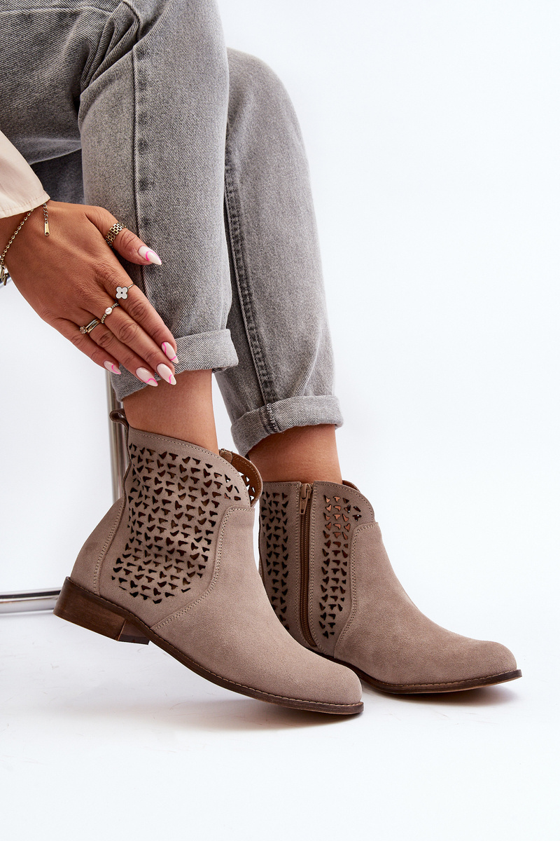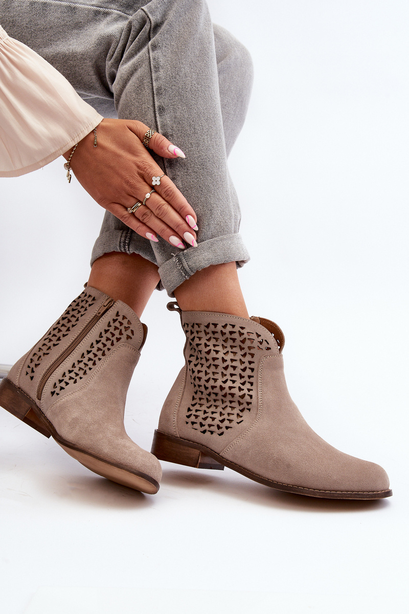 Zazoo 2791 Zamszowe Ażurowe Botki Beżowe