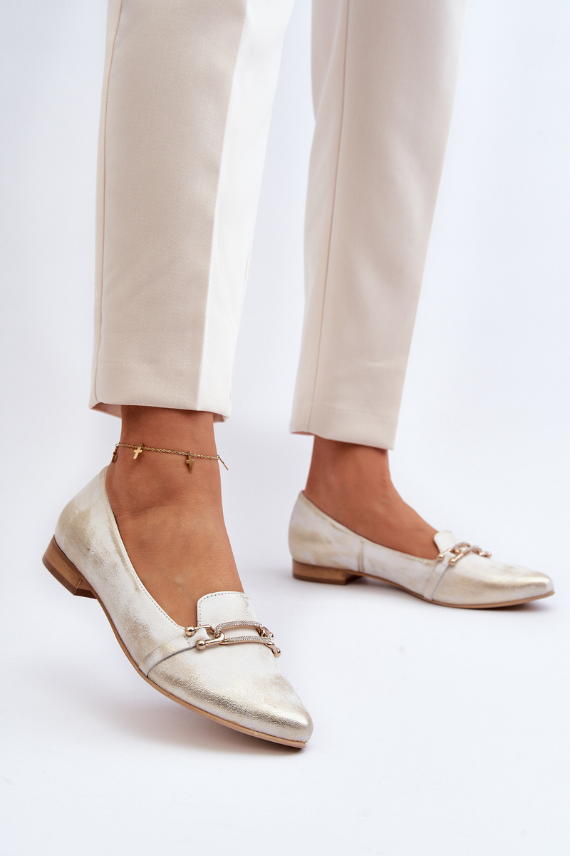 Zazoo 2885 Skórzane Baleriny Z Ozdobą Złoto-Białe