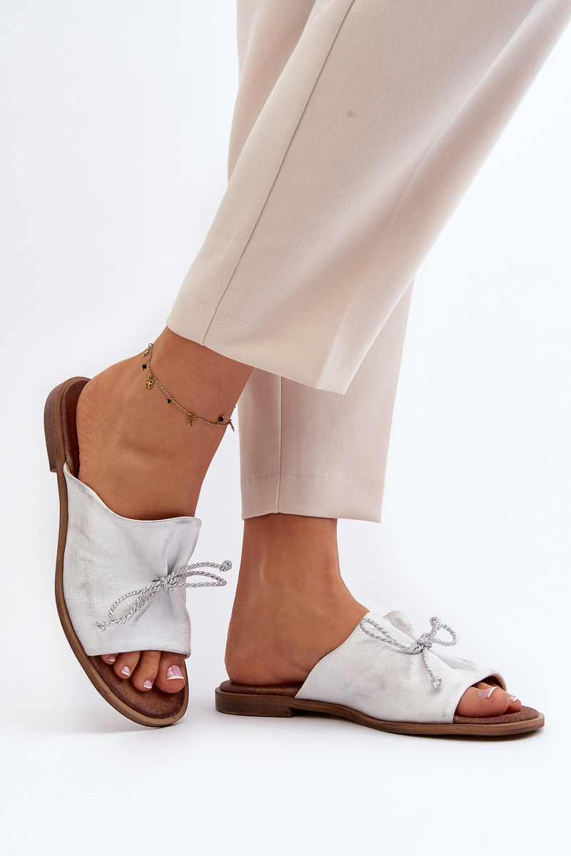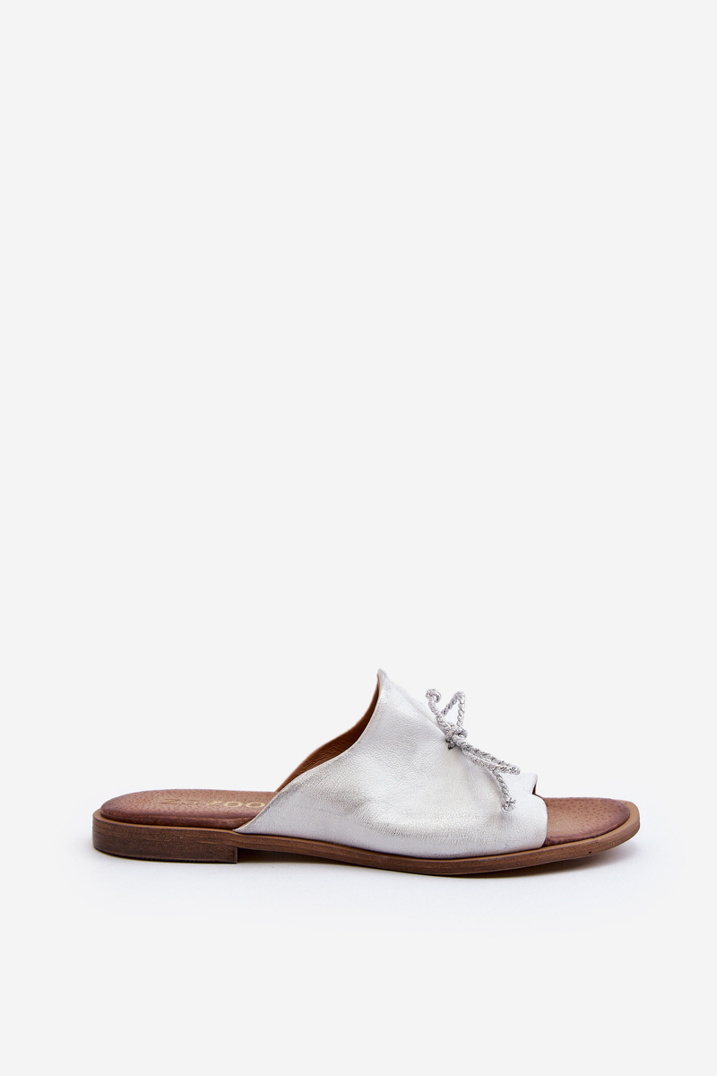 Zazoo 2659 Skórzane Klapki Damskie Srebrne