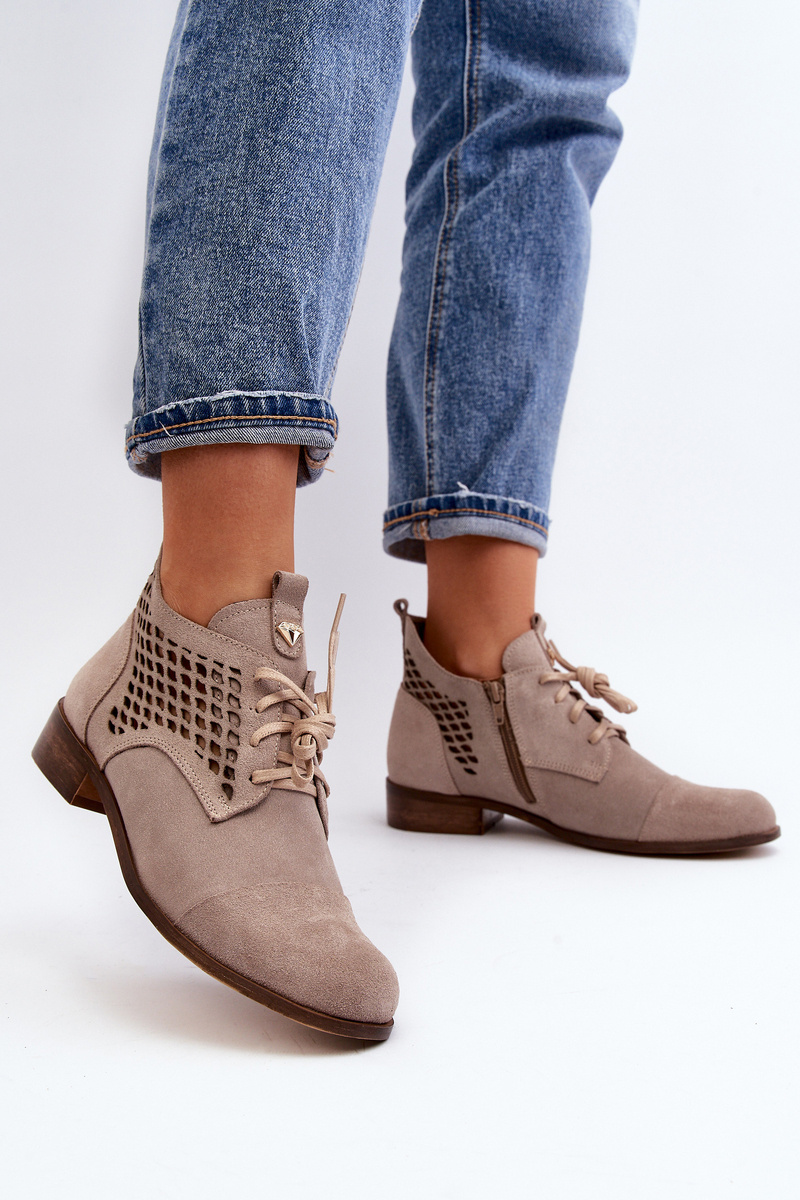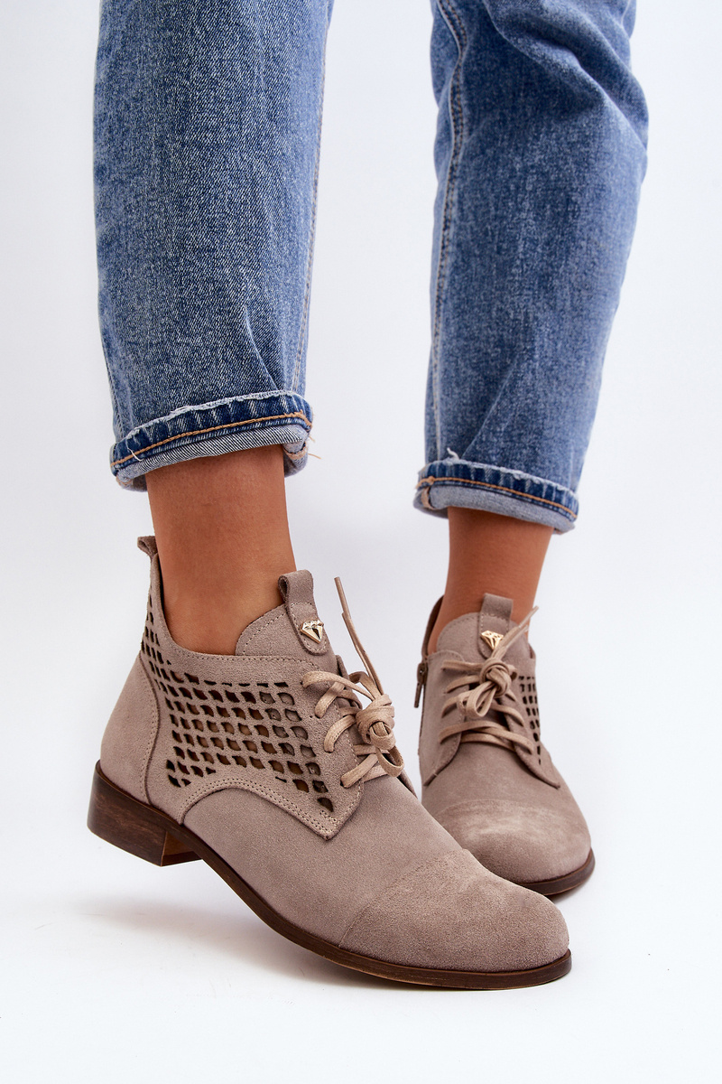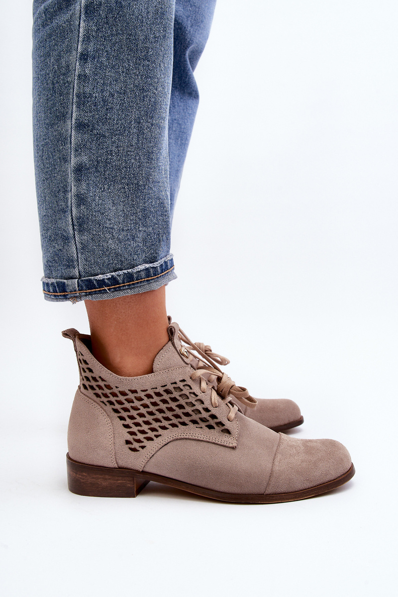 Zazoo 2878 Niskie Ażurowe Botki Damskie Zamszowe Beżowe