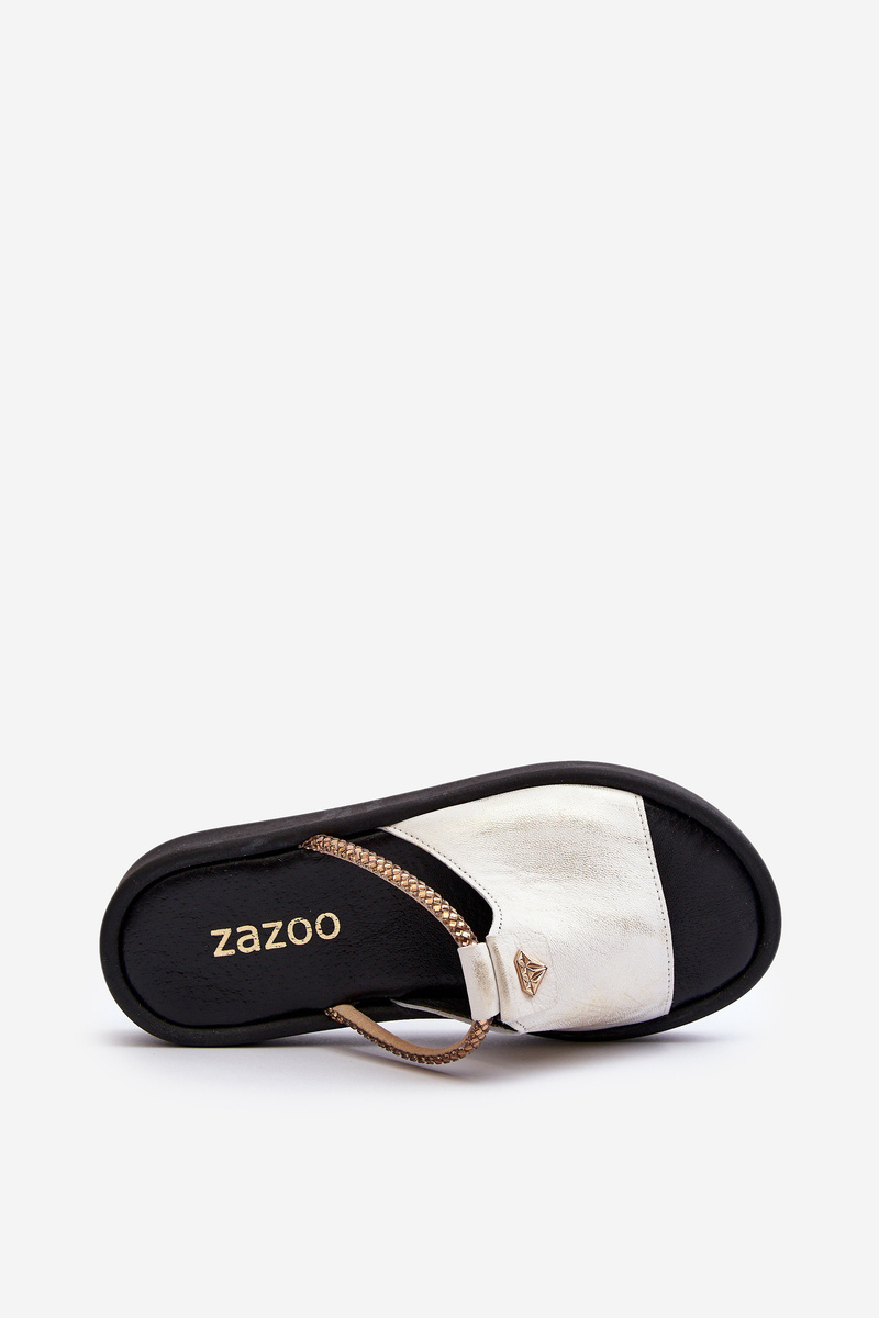 Zazoo 2896 Klapki Damskie Skórzane Biało-Złote