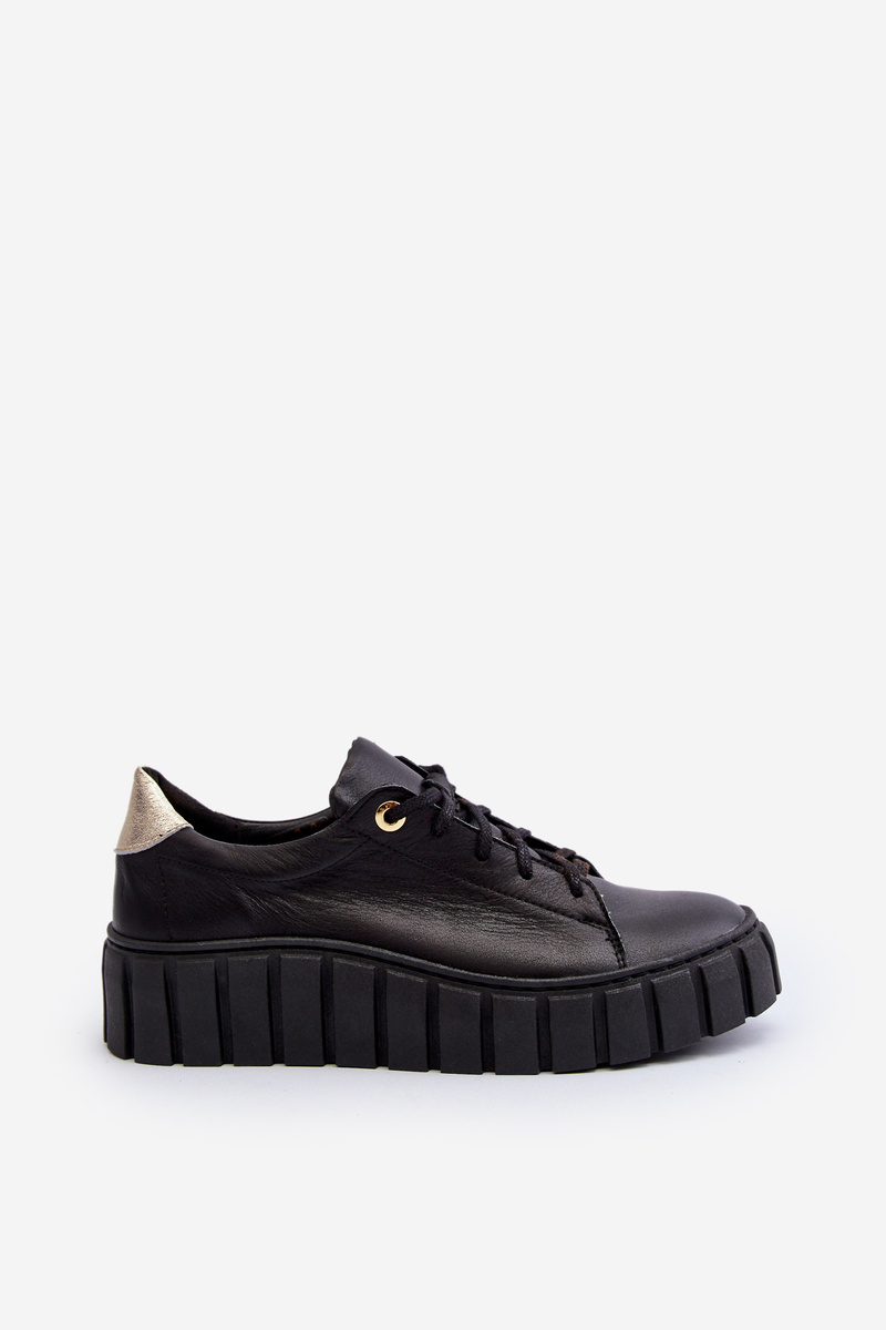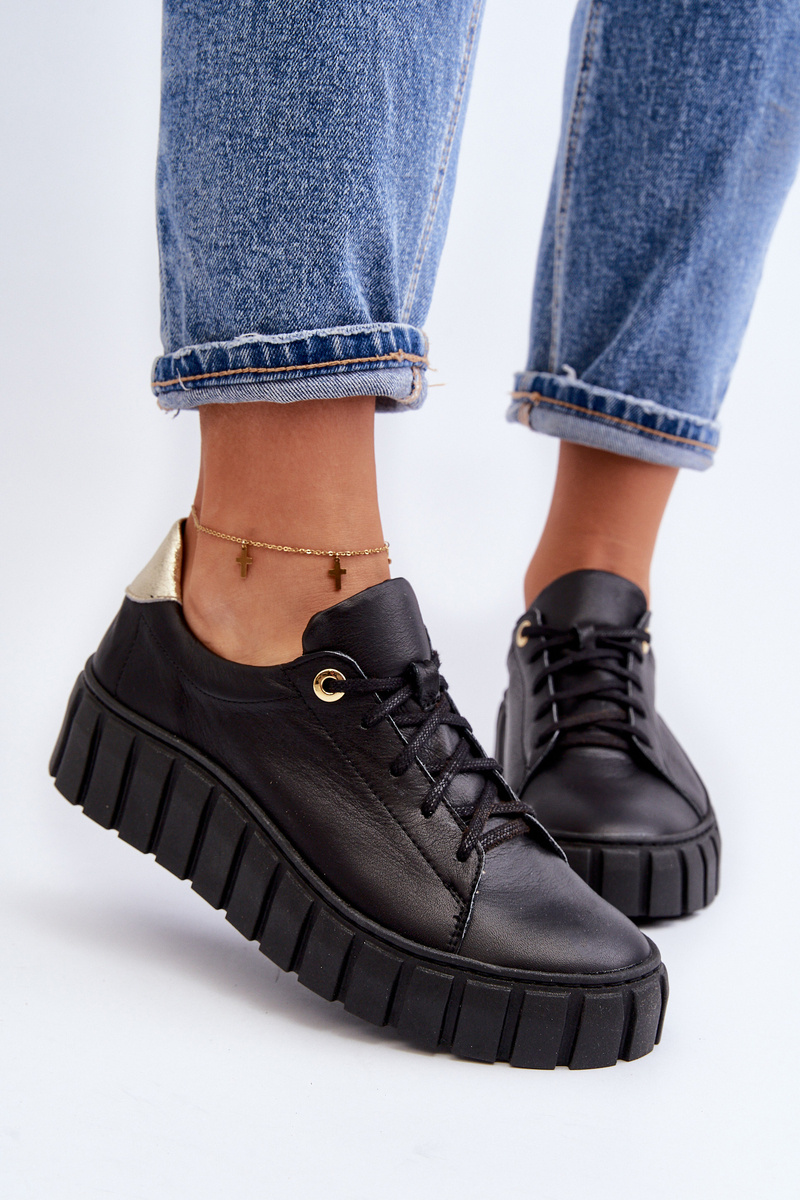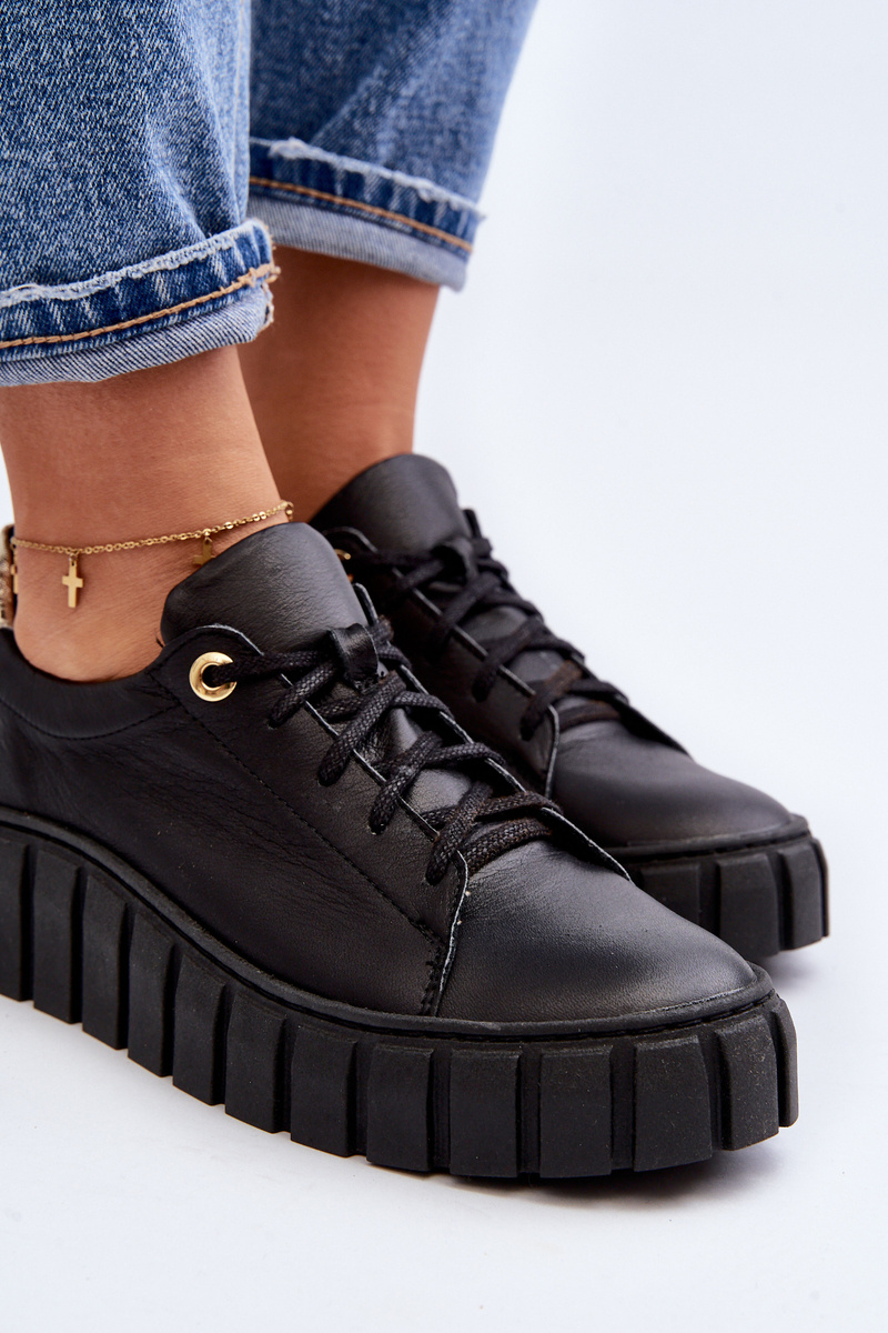 Zazoo 2919 Damskie Skórzane Półbuty Na Grubej Podeszwie Czarne
