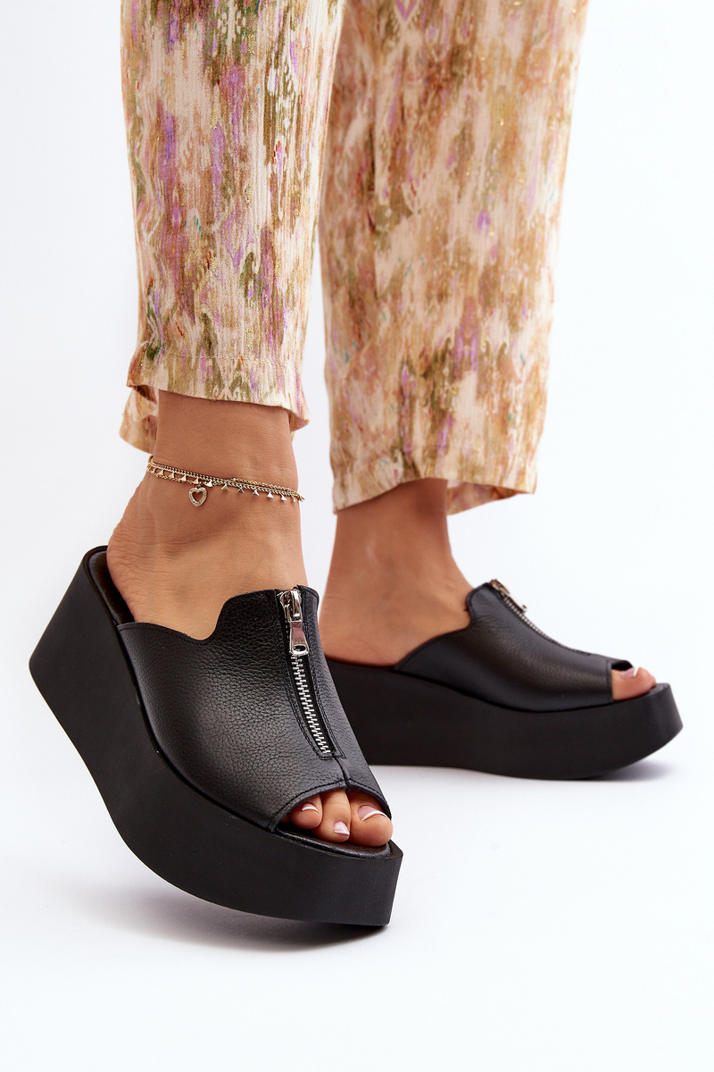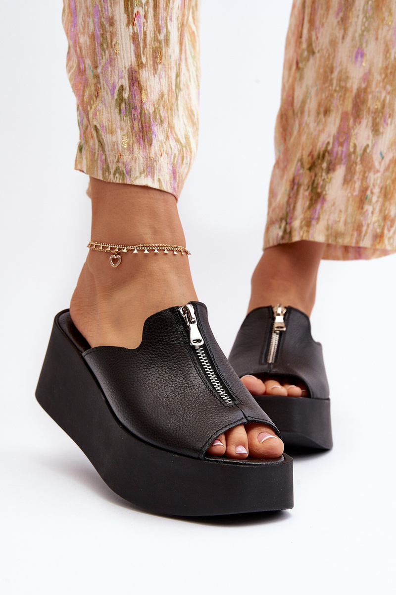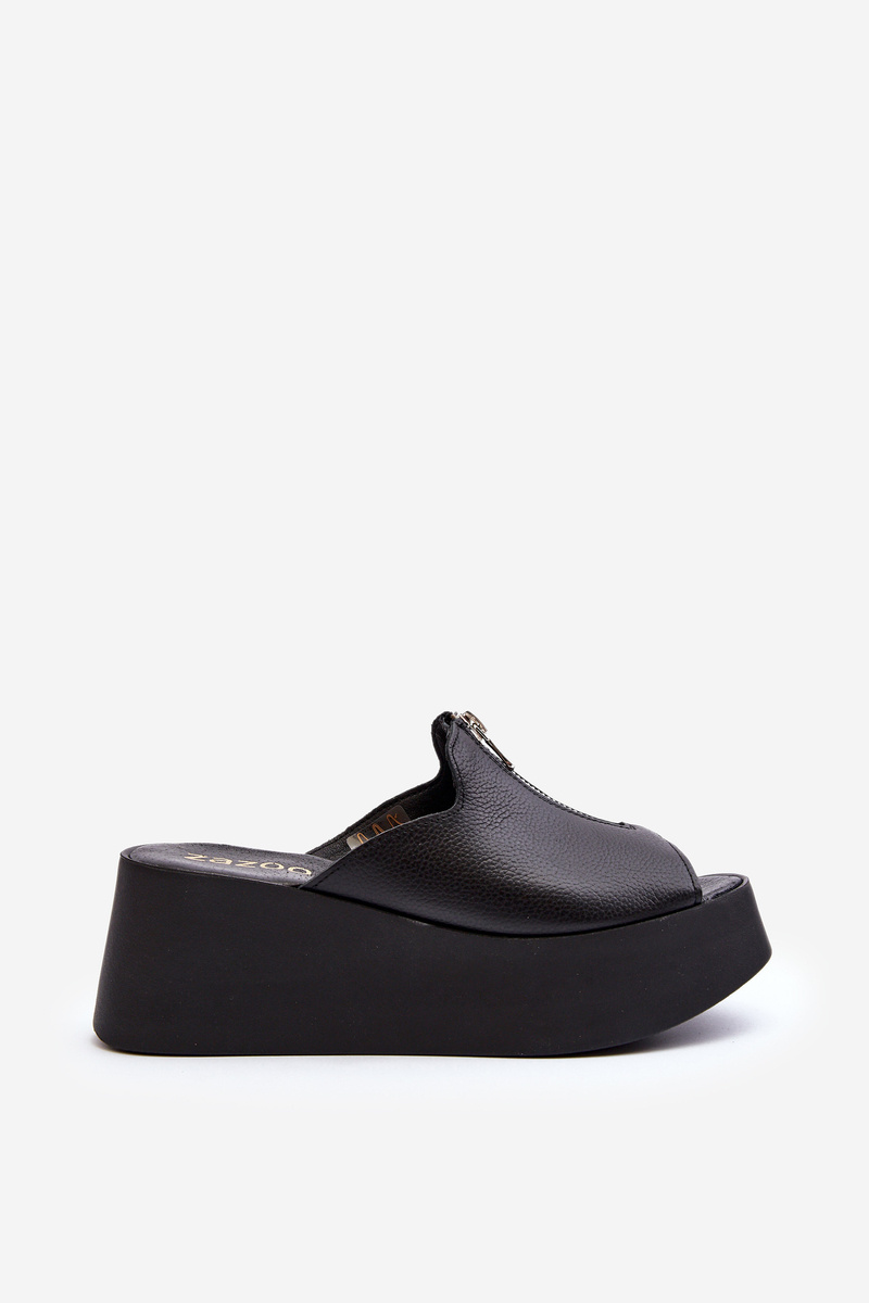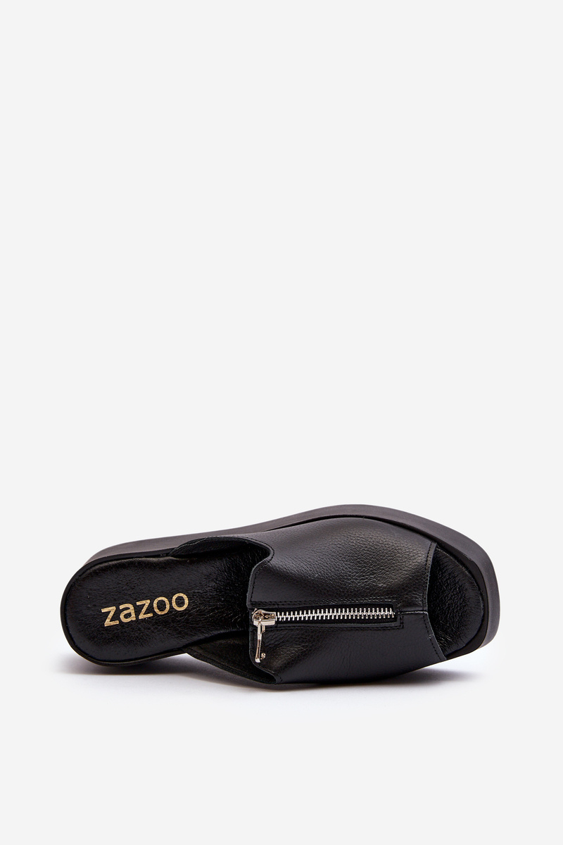 Zazoo 2916 Damskie Klapki Na Masywnej Platformie Z Suwakiem Czarne