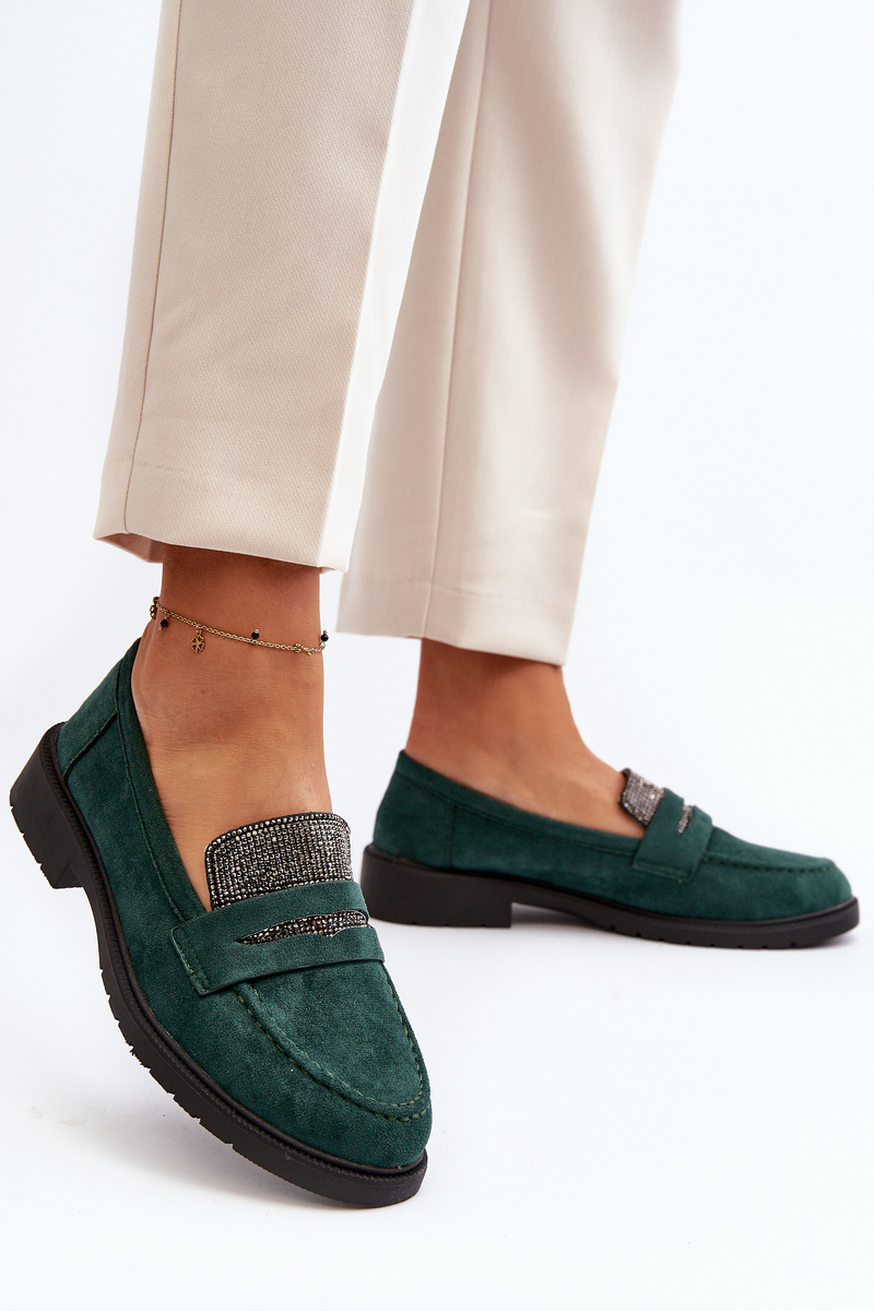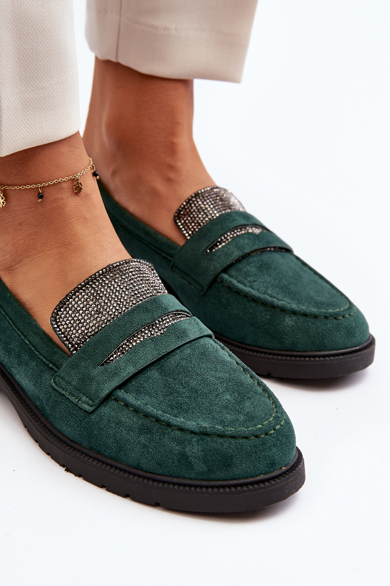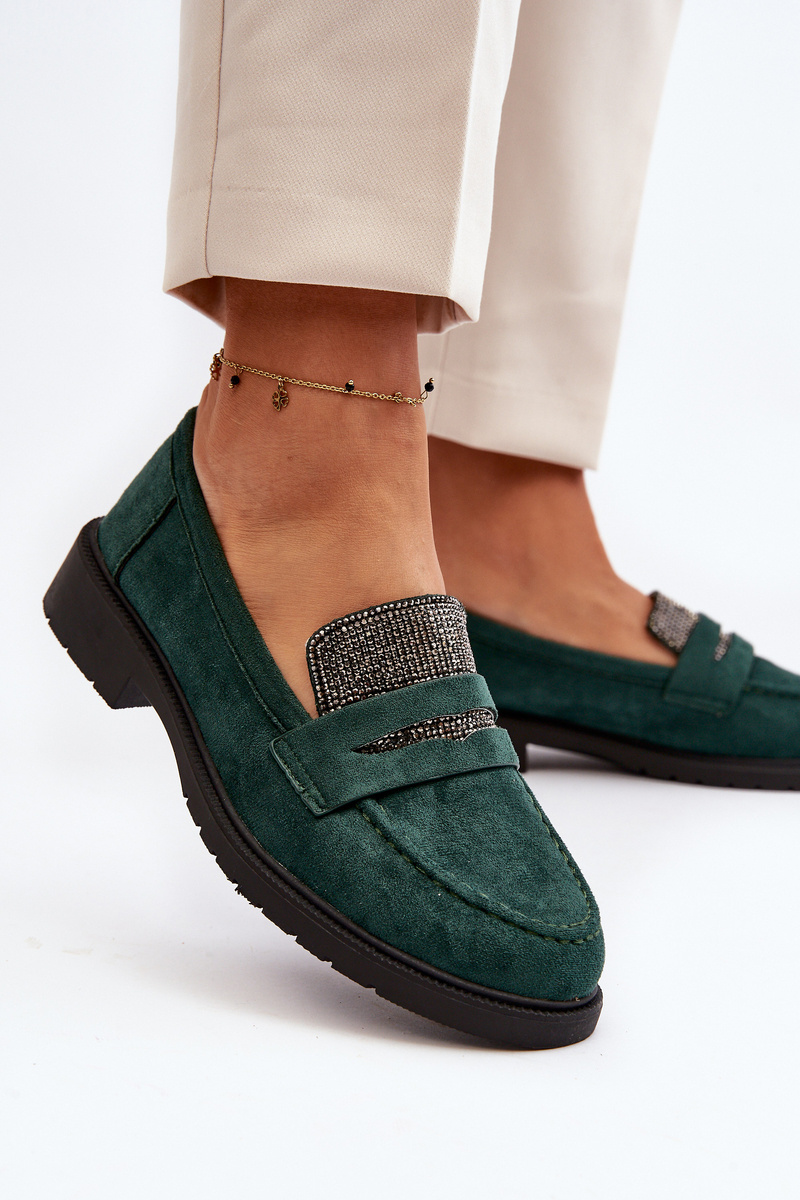 Damskie Zdobione Mokasyny Ciemnozielone Dananei