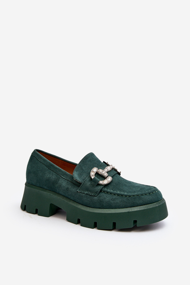 Damskie Mokasyny Z Ozdobą Zielone Ellise