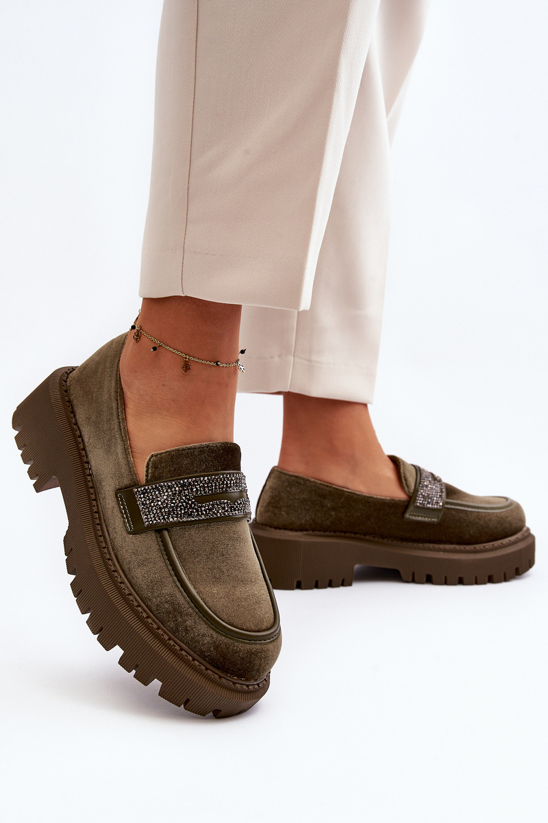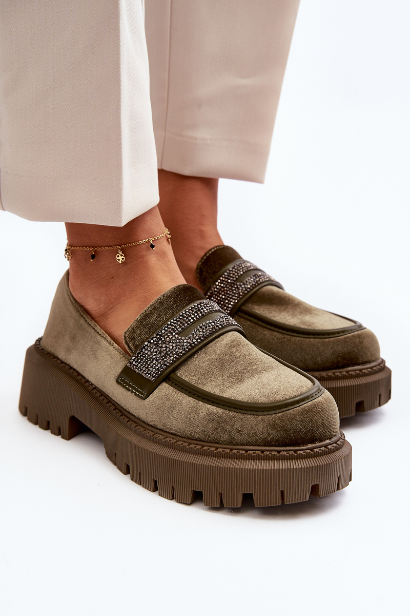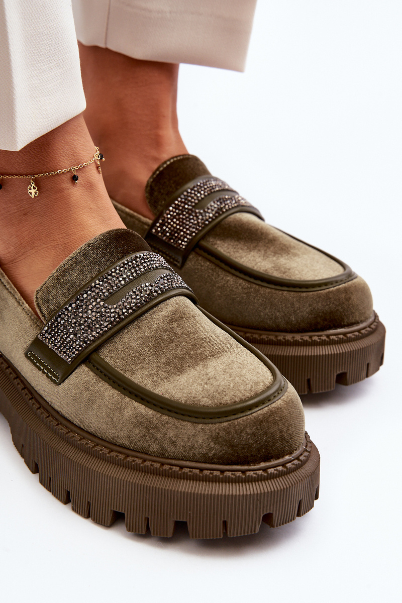 Damskie Welurowe Mokasyny Z Ozdobą Ciemnozielone Wendreda